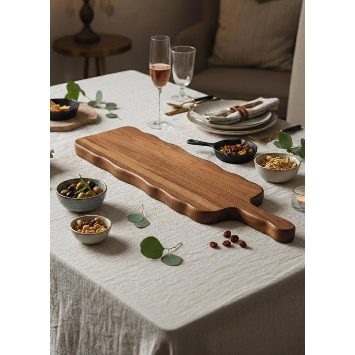 Doğal ahşap damar geçişleri her ürünü benzersiz kılar ve sofralara rustik, modern ve zamansız bir karakter kazandırır. Günlük kullanım için pratik, özel davet sofraları için ise şık bir tamamlayıcıdır.