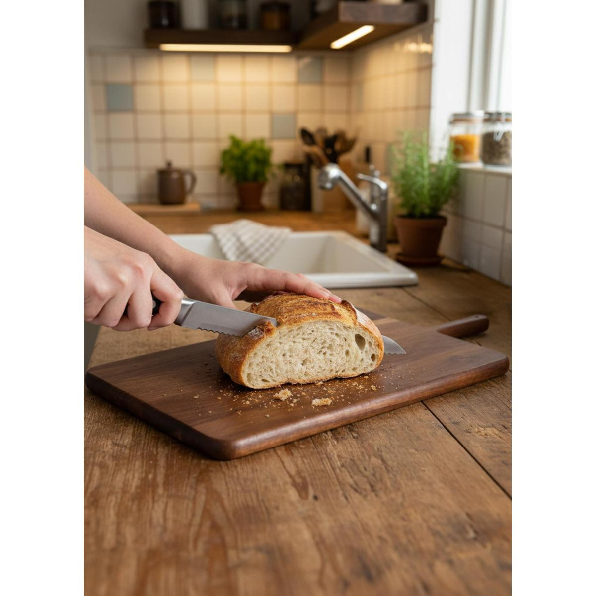 Doğal ahşap damar geçişleri her ürünü benzersiz kılar. Minimal ve zamansız tasarımı sayesinde yalnızca bir kesme tahtası değil, aynı zamanda şık bir sunum tahtası olarak da kullanılabilir. Kahvaltı sofralarında, peynir & şarküteri sunumlarında veya rustik masa dekorasyonlarında güçlü bir tamamlayıcıdır.