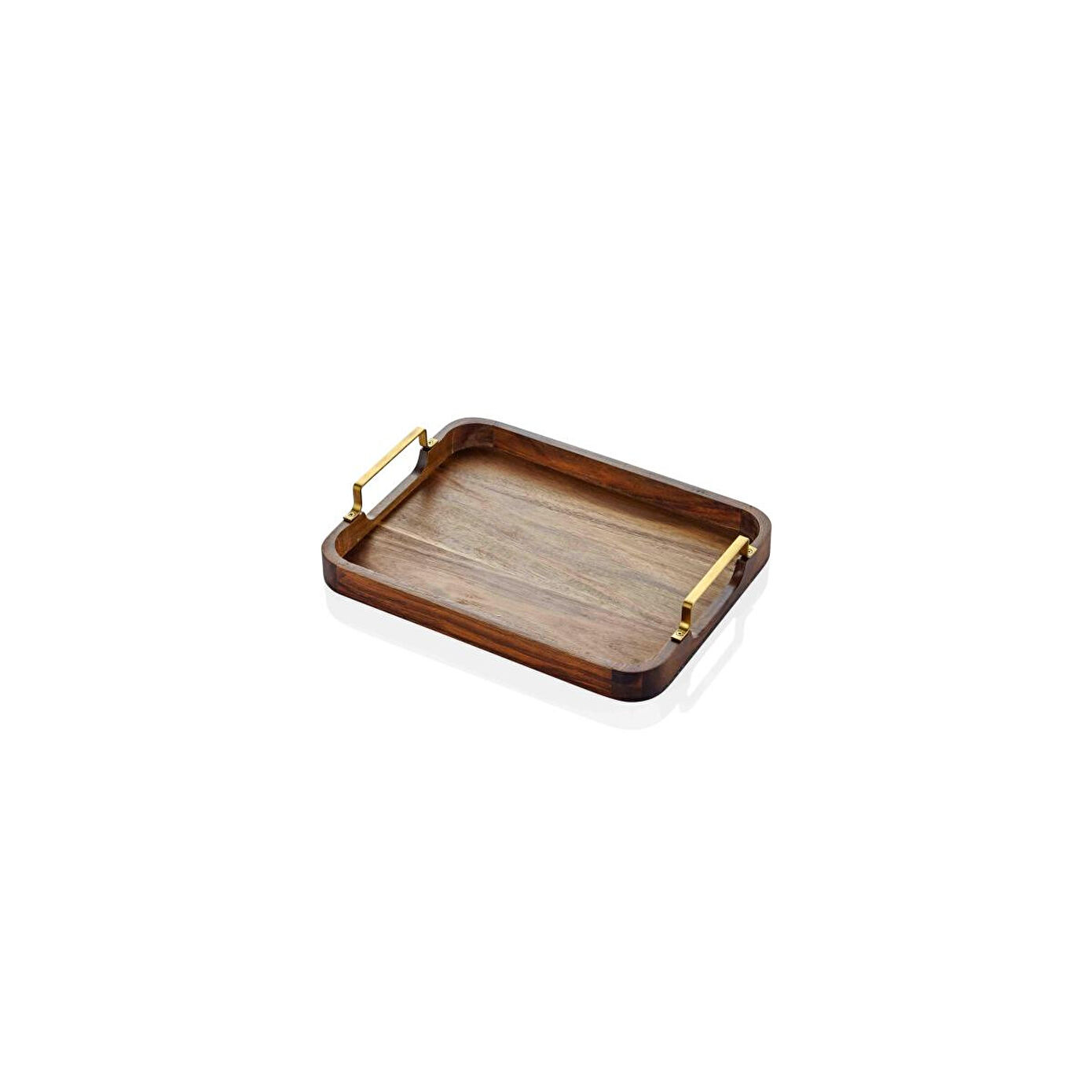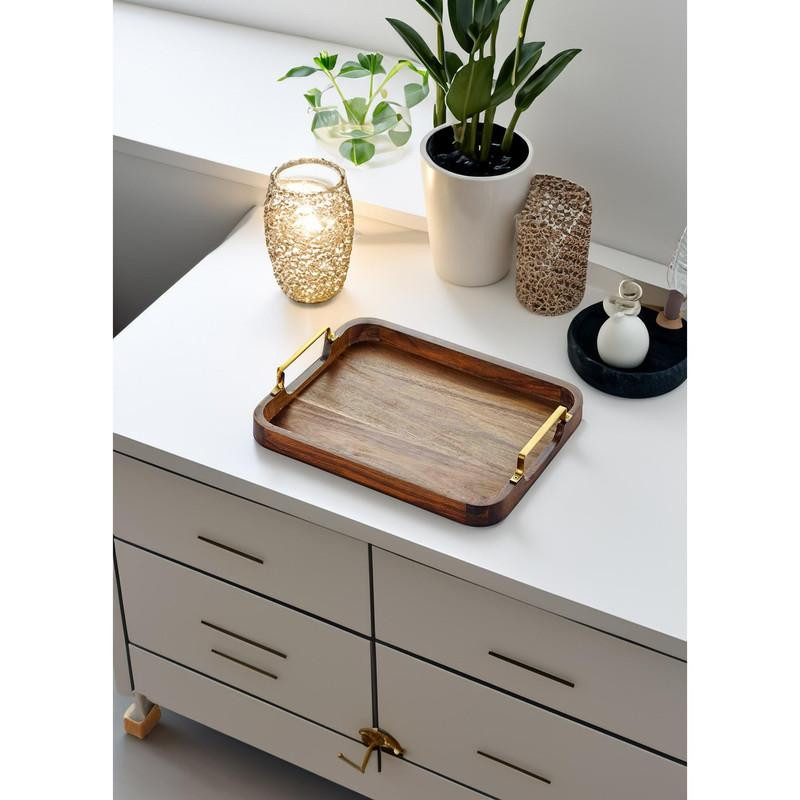 The Mia Natura Metal Kollu Akasya Tepsi 30x23 Cm