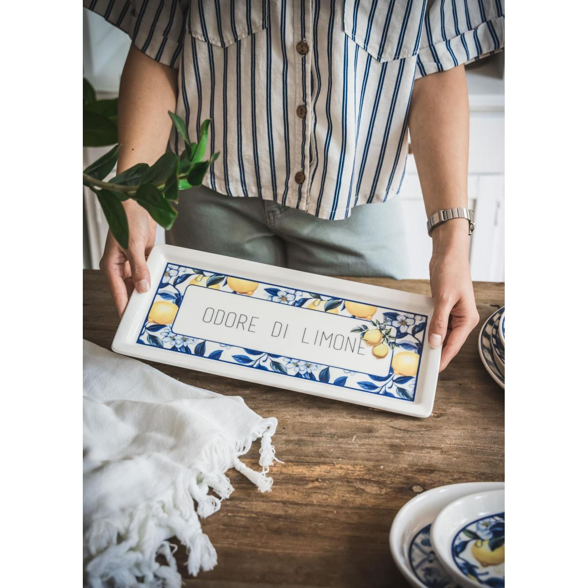 Sunumlarınızı daha şık hale getirecek ve misafirlerinizi özendirecek Odore Di Limone Serisi Dikdörtgen Servis Tabağı sofraların göz kamaştıran ayrıntısı olacaktır.