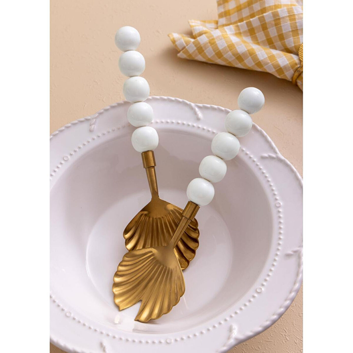 Ürün Tipi: Salata Servis Takımı Parça Sayısı: 2 parça (İkili set) Kaplama: Matt Gold PVD Finish Sap Malzemesi: Seramik Renk: Mat Gold - beyaz Uzunluk: 27 cmBakım ve Temizlik
