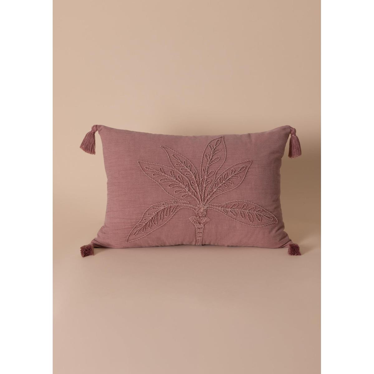 The Mia Gül Kurusu %100 Pamuk Desenli Püsküllü Kırlent – 35x50 cm