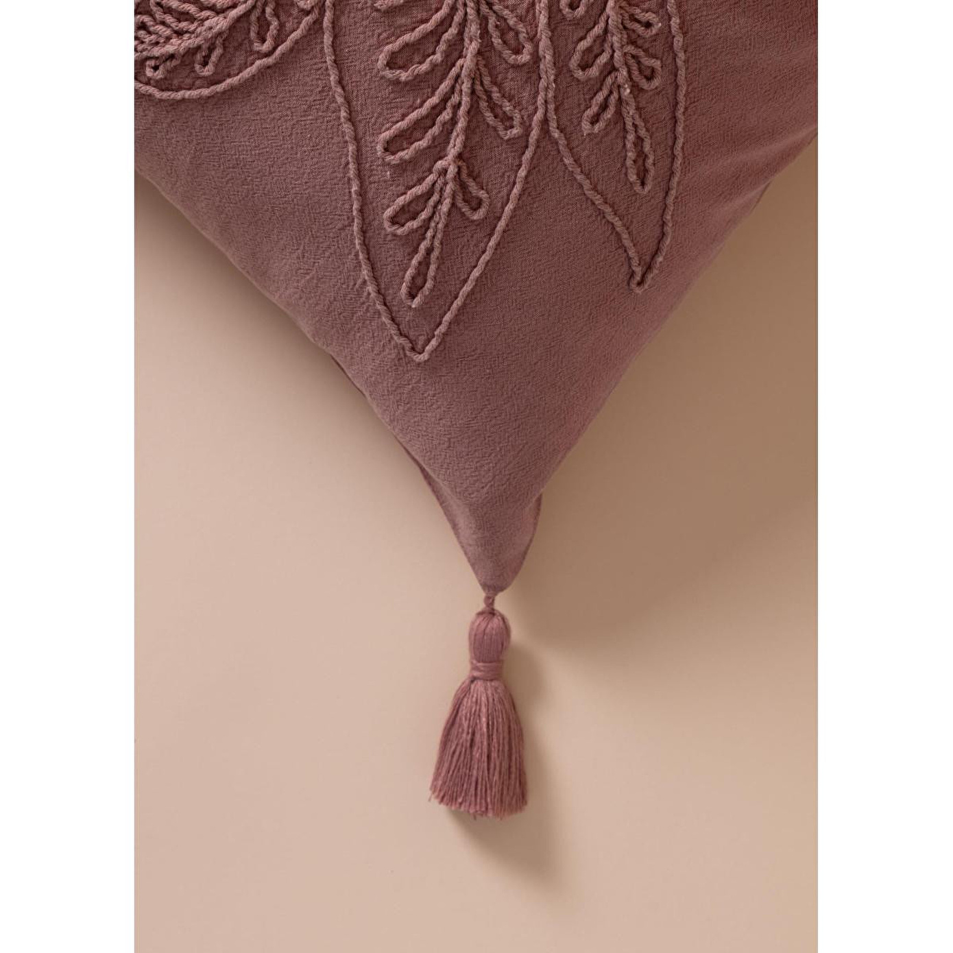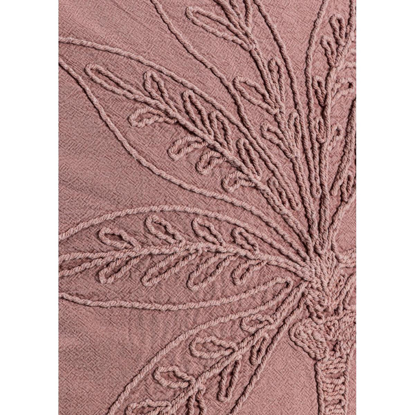 The Mia Gül Kurusu Desenli Kırlent, %100 pamuk dokusuyla doğal bir yumuşaklık sunarken, kabartmalı yaprak desen detayı ve köşe püskülleriyle yaşam alanlarına sıcak ve zarif bir karakter kazandırır.