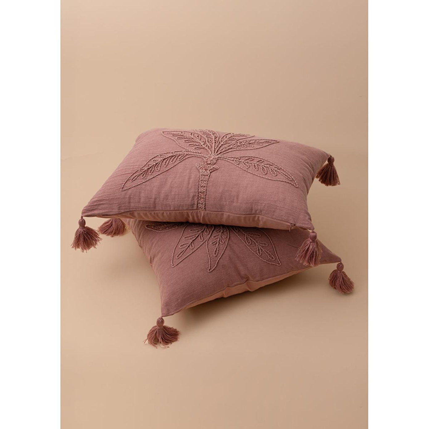 The Mia Gül Kurusu %100 Pamuk Desenli Püsküllü Kırlent – 45x45 cm