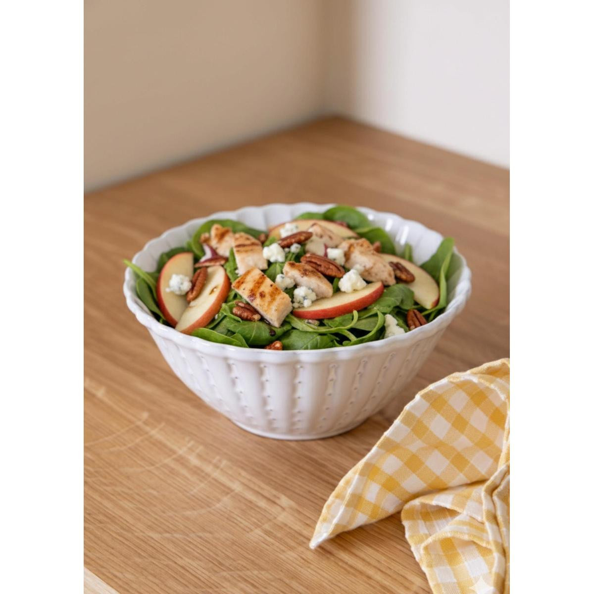 Geniş hacmi sayesinde salata, meyve, atıştırmalık ve farklı sunumlar için rahatlıkla kullanılabilir. Minimal beyaz rengi sayesinde farklı sofra düzenleriyle kolayca uyum sağlar ve sofralarda zamansız bir şıklık yaratır.