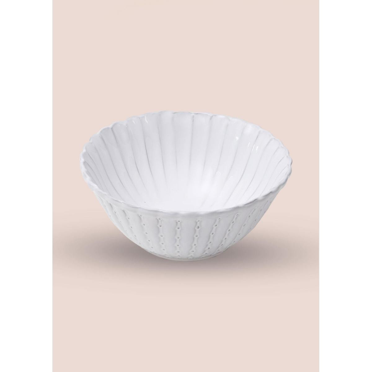 Zarif ve sade tasarımıyla öne çıkan 21 cm beyaz seramik salata kasesi, sofralarınıza şık ve modern bir dokunuş katar. Kabartmalı yüzey detayları ve yuvarlak formu sayesinde hem günlük kullanım hem de özel sunumlar için ideal bir servis ürünüdür.