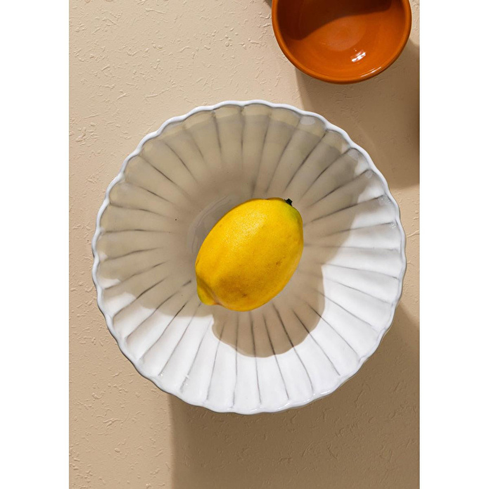 Şık ve zamansız tasarım: Sade beyaz rengi ve kabartmalı yüzey detayıyla her sofra düzenine uyum sağlar. Geniş kullanım alanı: Salata, meyve, atıştırmalık ve farklı sunumlar için idealdir. Dayanıklı seramik malzeme: Günlük kullanım için sağlam ve uzun ömürlüdür. Estetik sunum: Sofralarda hem fonksiyonel hem dekoratif bir servis ürünü olarak kullanılabilir.Bakım & Yıkama Talimatı