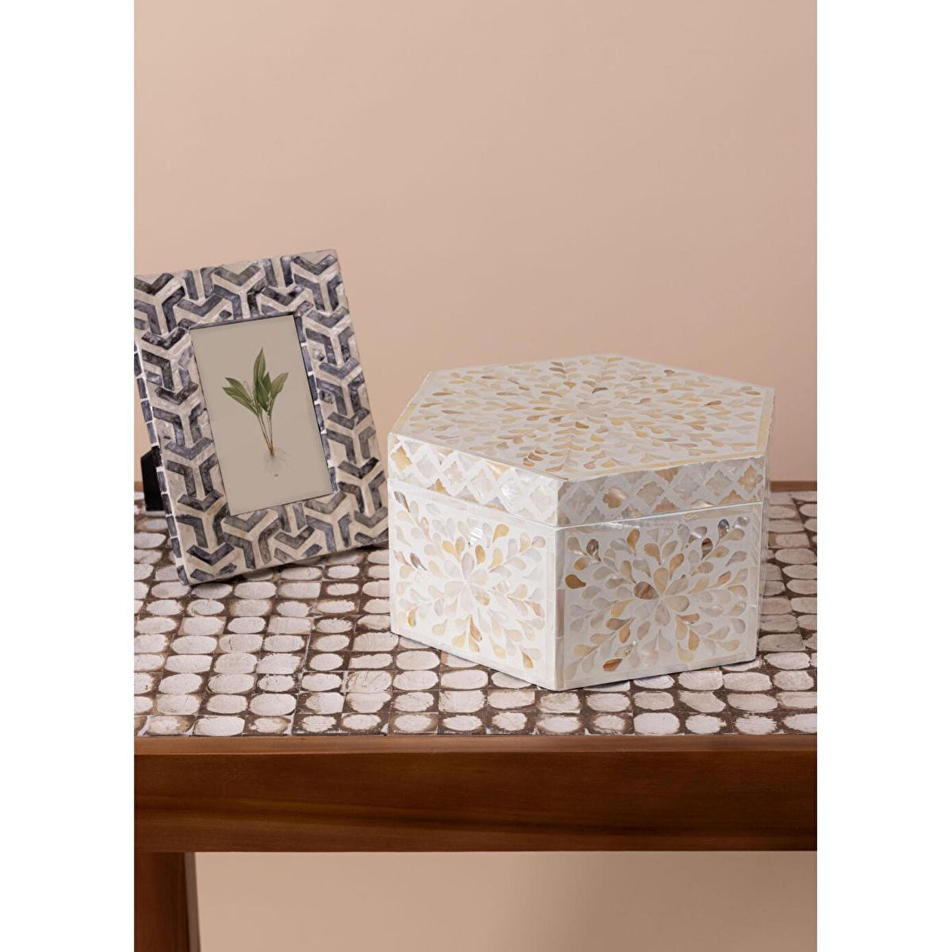 The Mia Sedef Altıgen Kutu 28x24x14 Cm Tlc0075