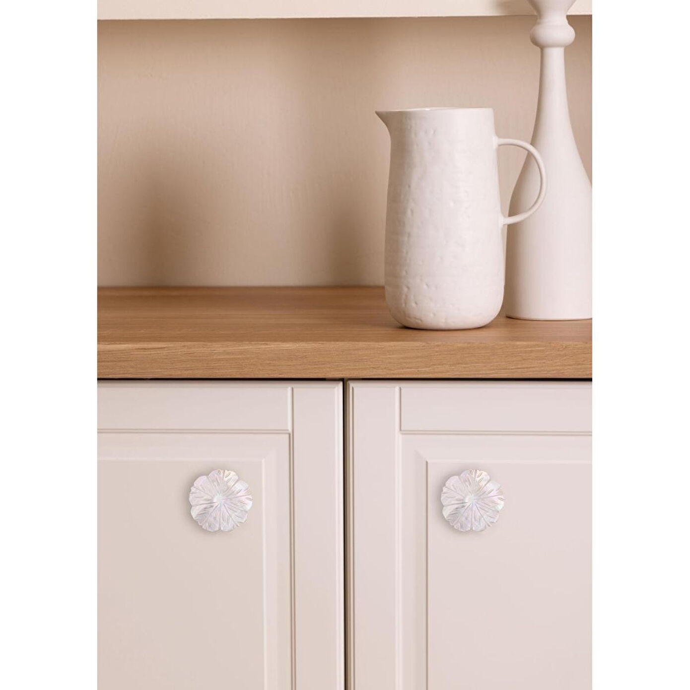 Doğal sedefin zarif ışıltısı ve çiçek formundaki tasarımıyla öne çıkan bu sedef çekmece ve dolap kulbu, mobilyalarınıza romantik ve sofistike bir hava kazandırır. Işığa göre değişen doğal parlaklığı sayesinde her ortamda dikkat çekici bir görünüm sunar.