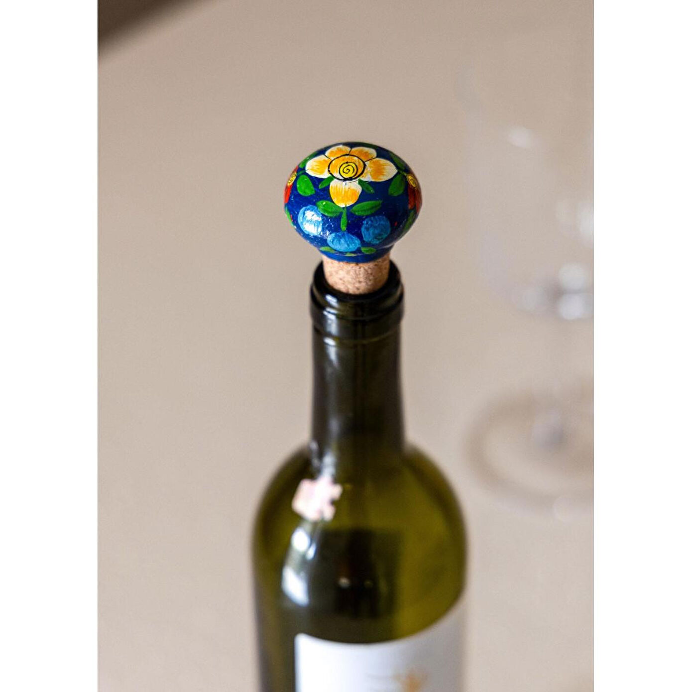 El yapımı seramik başlığı ve doğal mantar gövdesiyle şişelerinizi hem pratik hem de estetik bir şekilde kapatmanızı sağlar. Renkli ve desenli seramik detayı sayesinde mutfak, masa ve bar alanlarında dekoratif bir aksesuar olarak da kullanılabilir.