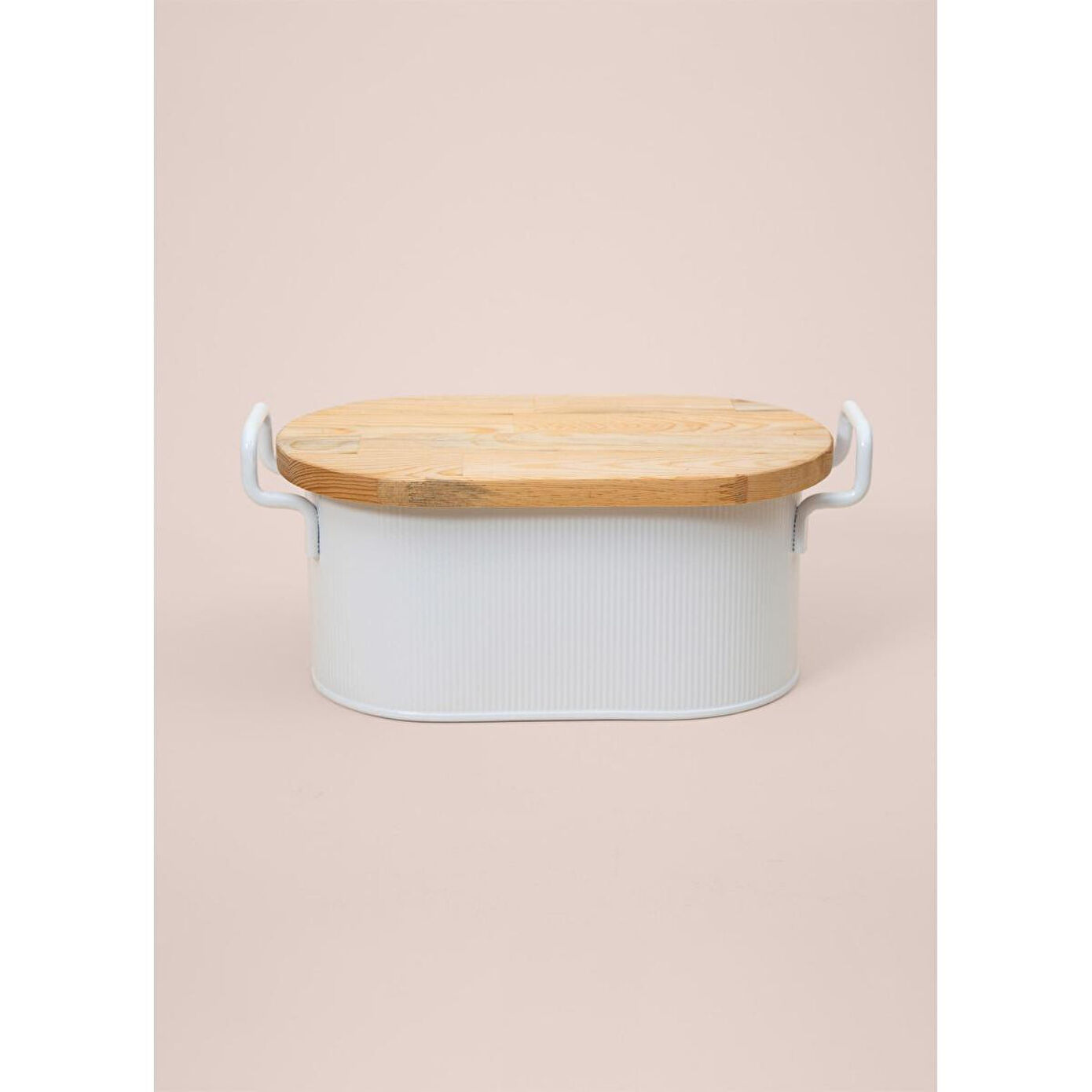 The Mia Stripe Ahşap Kapaklı Ekmek Saklama Kutusu Beyaz 40x22x18 Cm