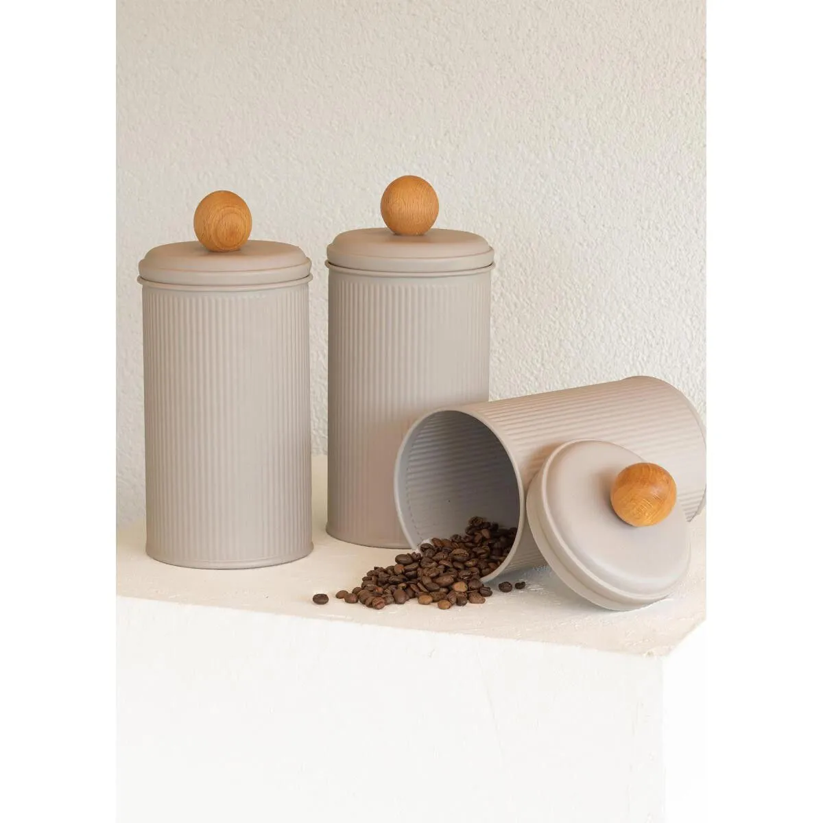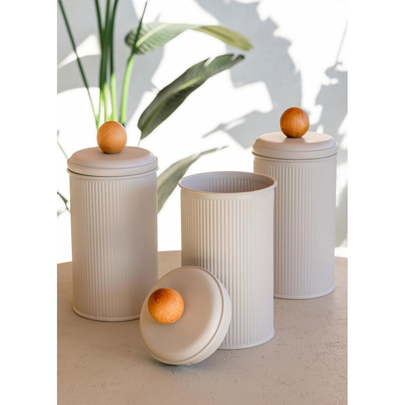 Galvaniz kaplamalı 3'lü kavanoz seti.