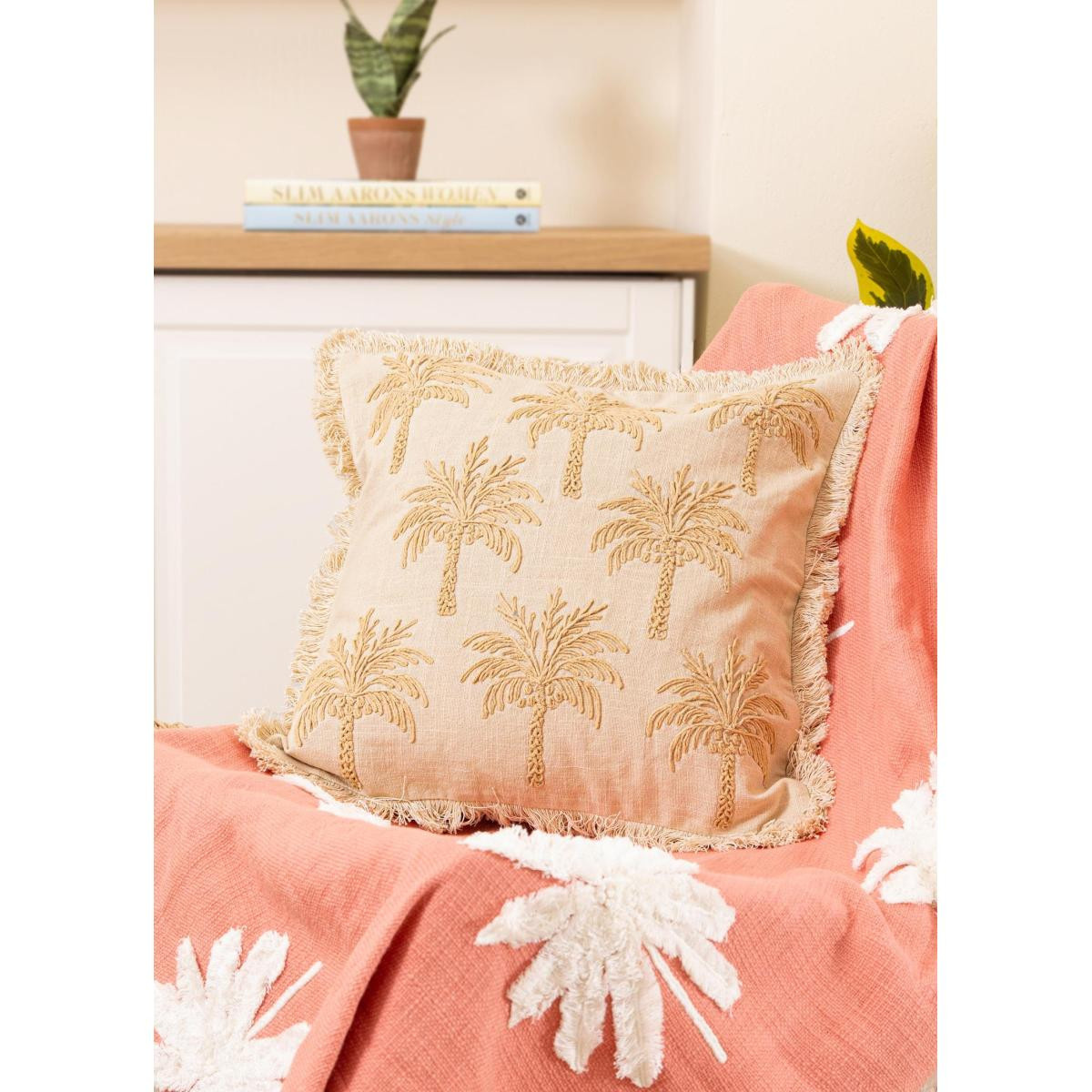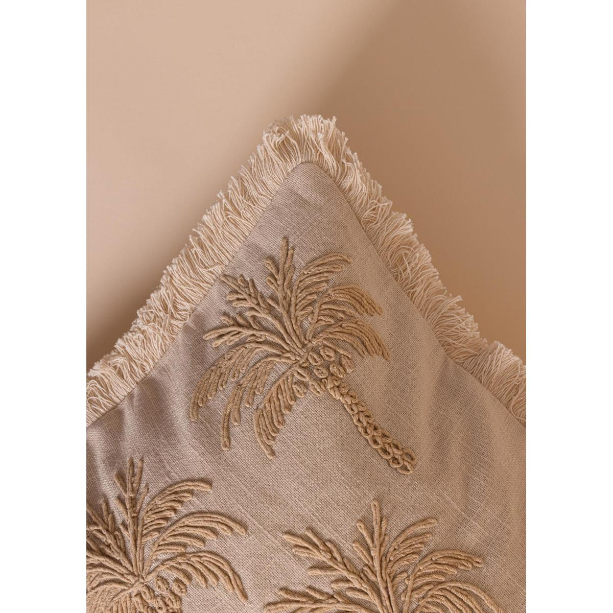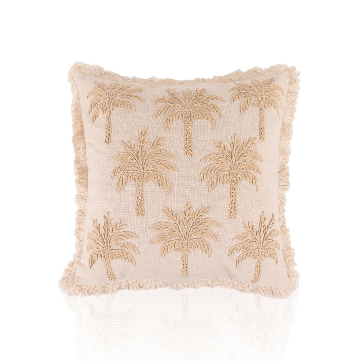 The Mia Bej Tropikal Palmiye Desenli %100 Pamuk Kırlent 45x45 cm