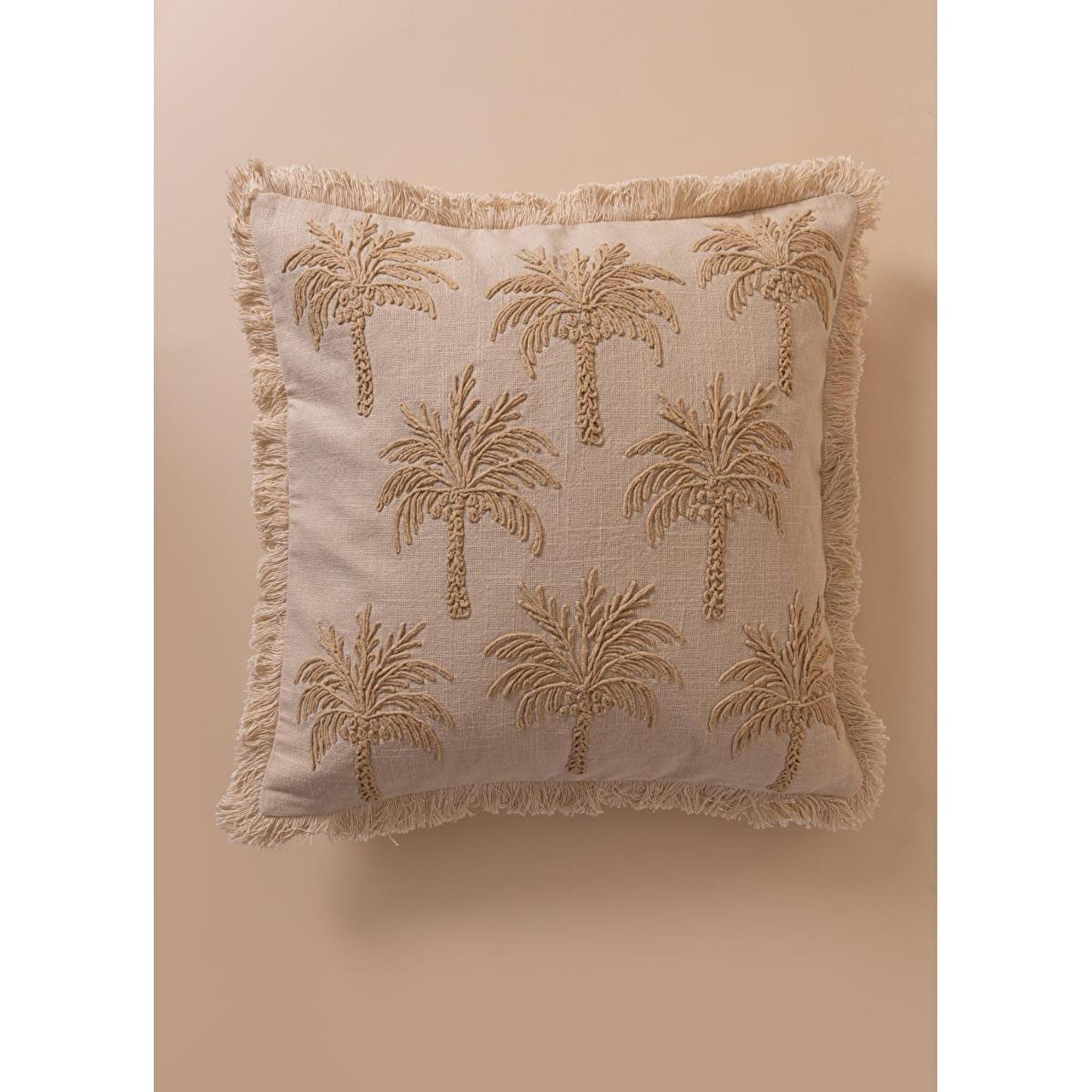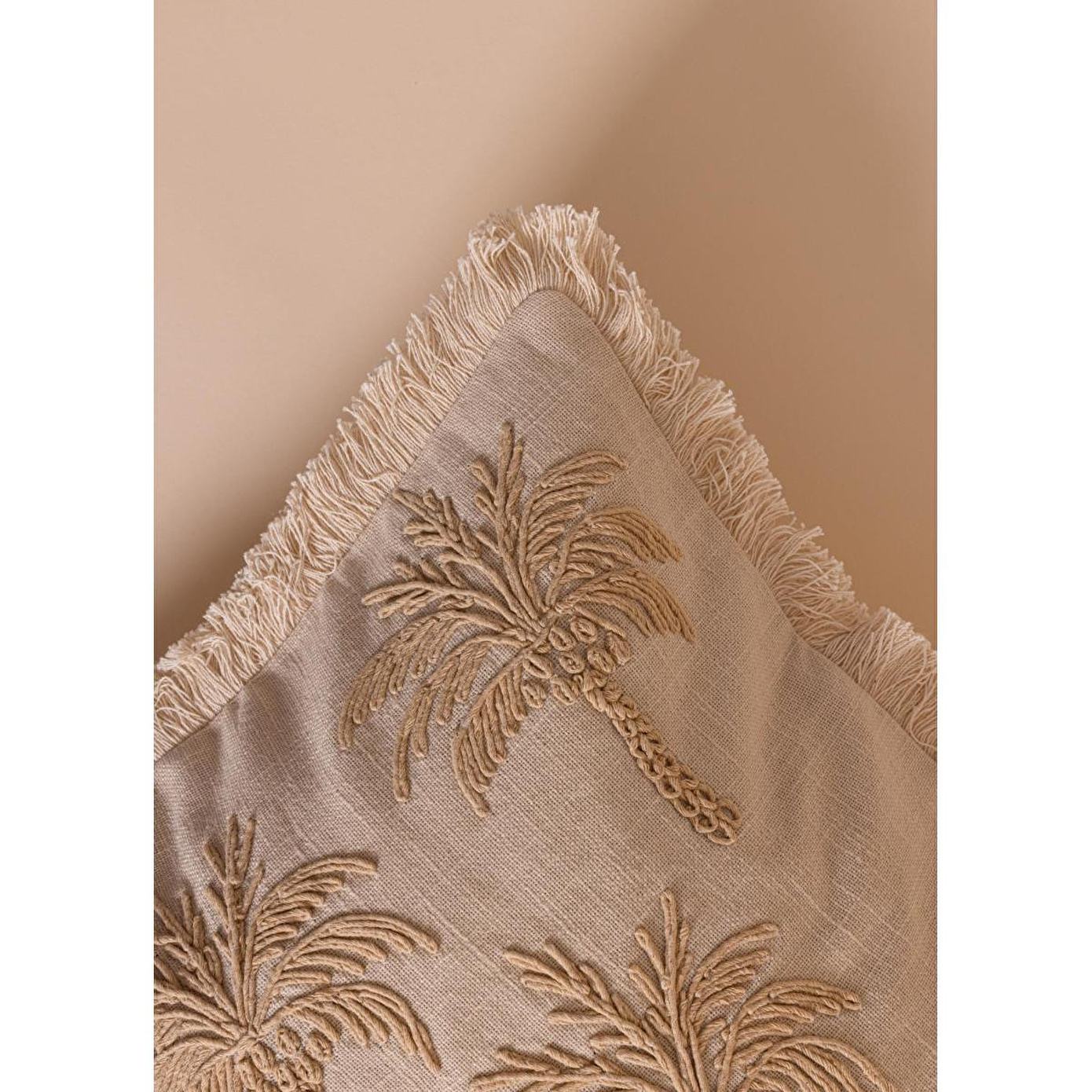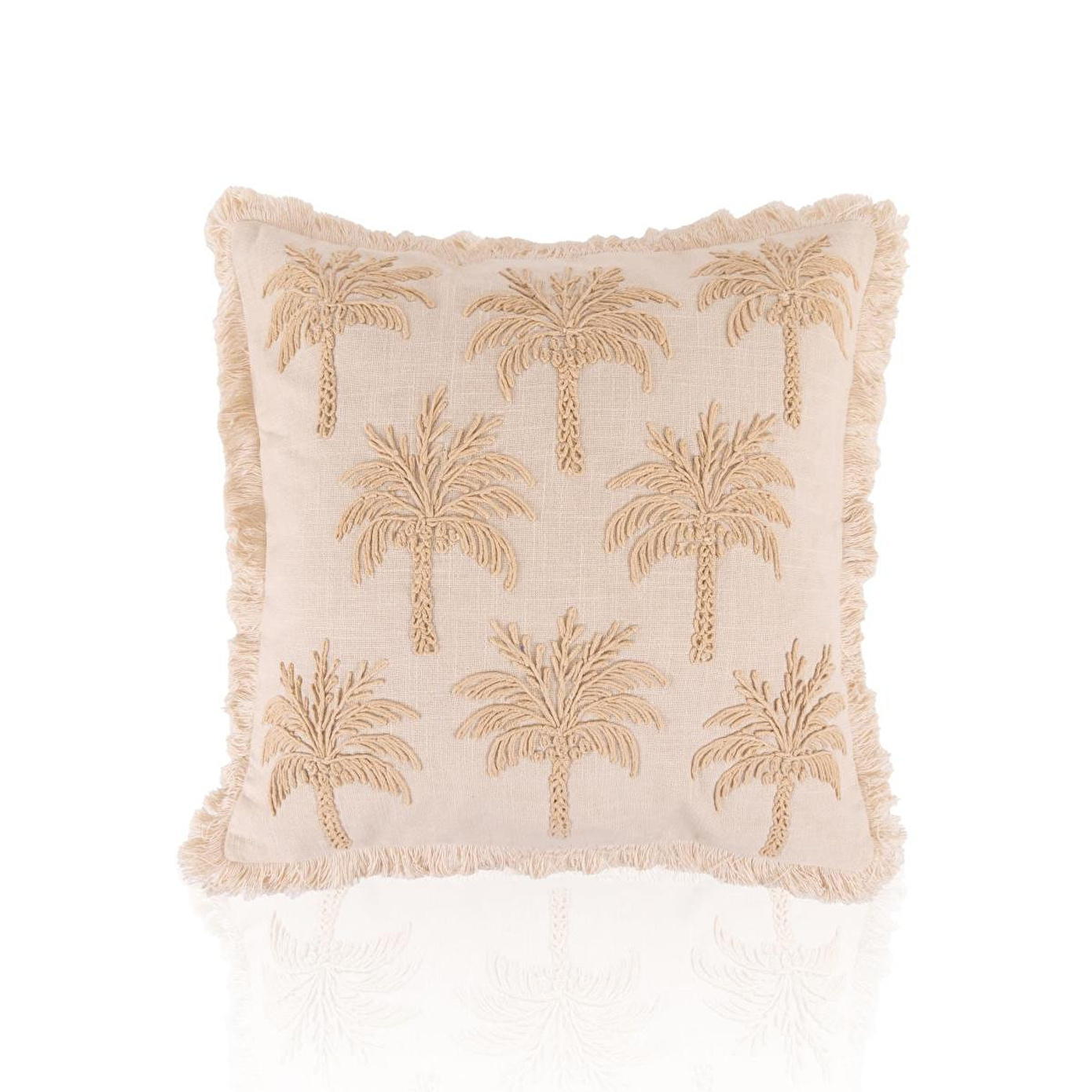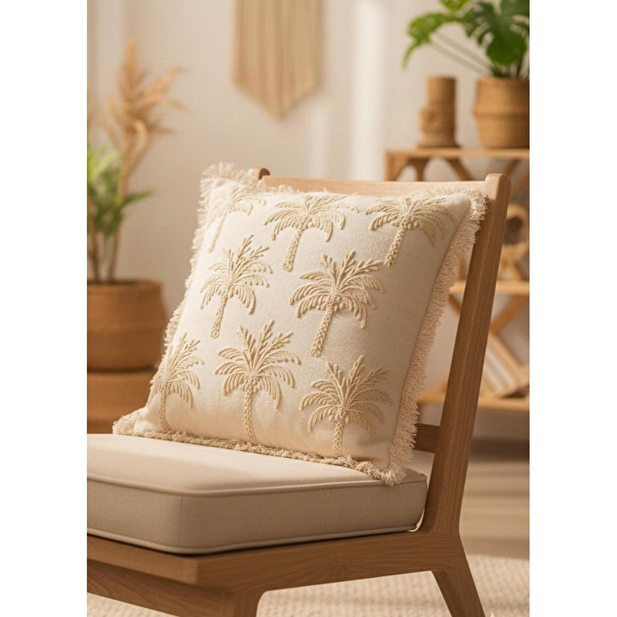 %100 pamuk dokuma kumaş sayesinde doğal ve nefes alabilen yapıKabartmalı palmiye deseni ile dekorasyonda güçlü bir stil vurgusuBej tonuyla modern, bohem ve doğal dekorasyonlara kolay uyumSaçak detaylarıyla hareketli ve özgün görünümTek başına kullanılabilir veya farklı kırlentlerle kombinlenebilir ölçüYıkama Talimatı