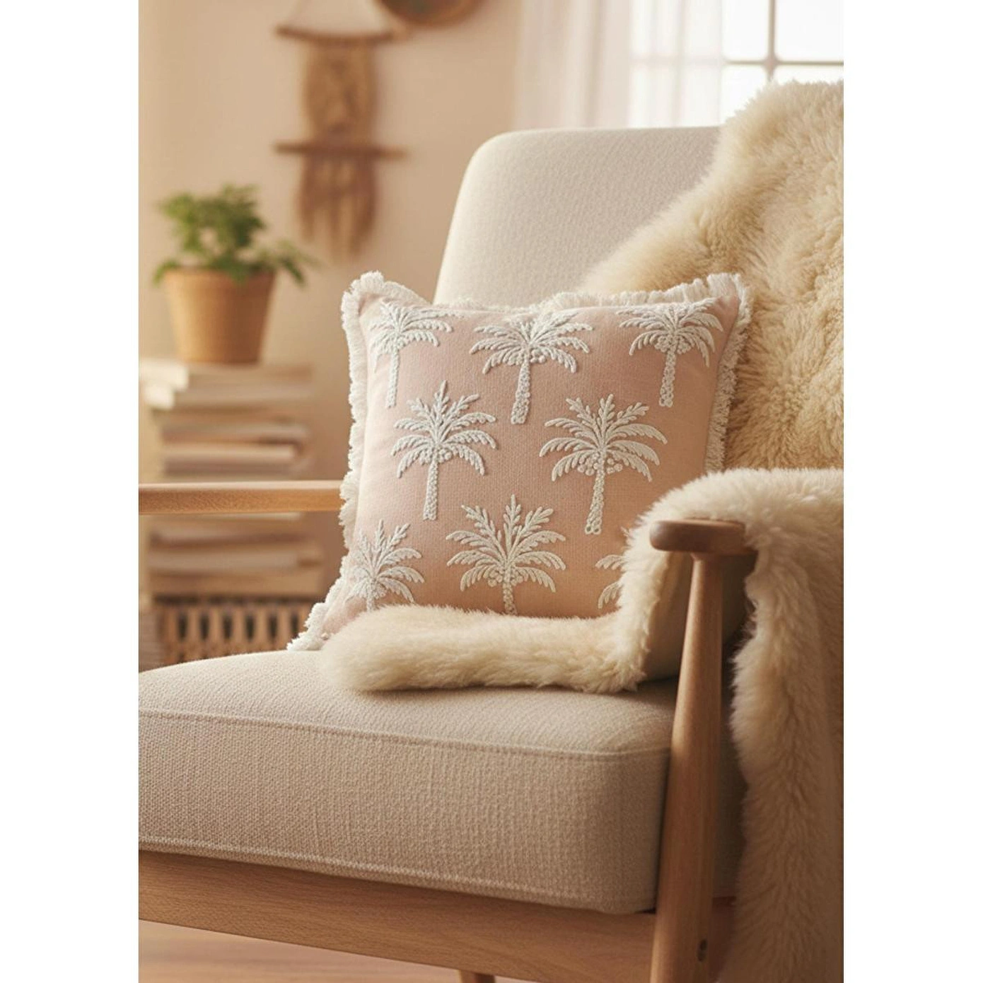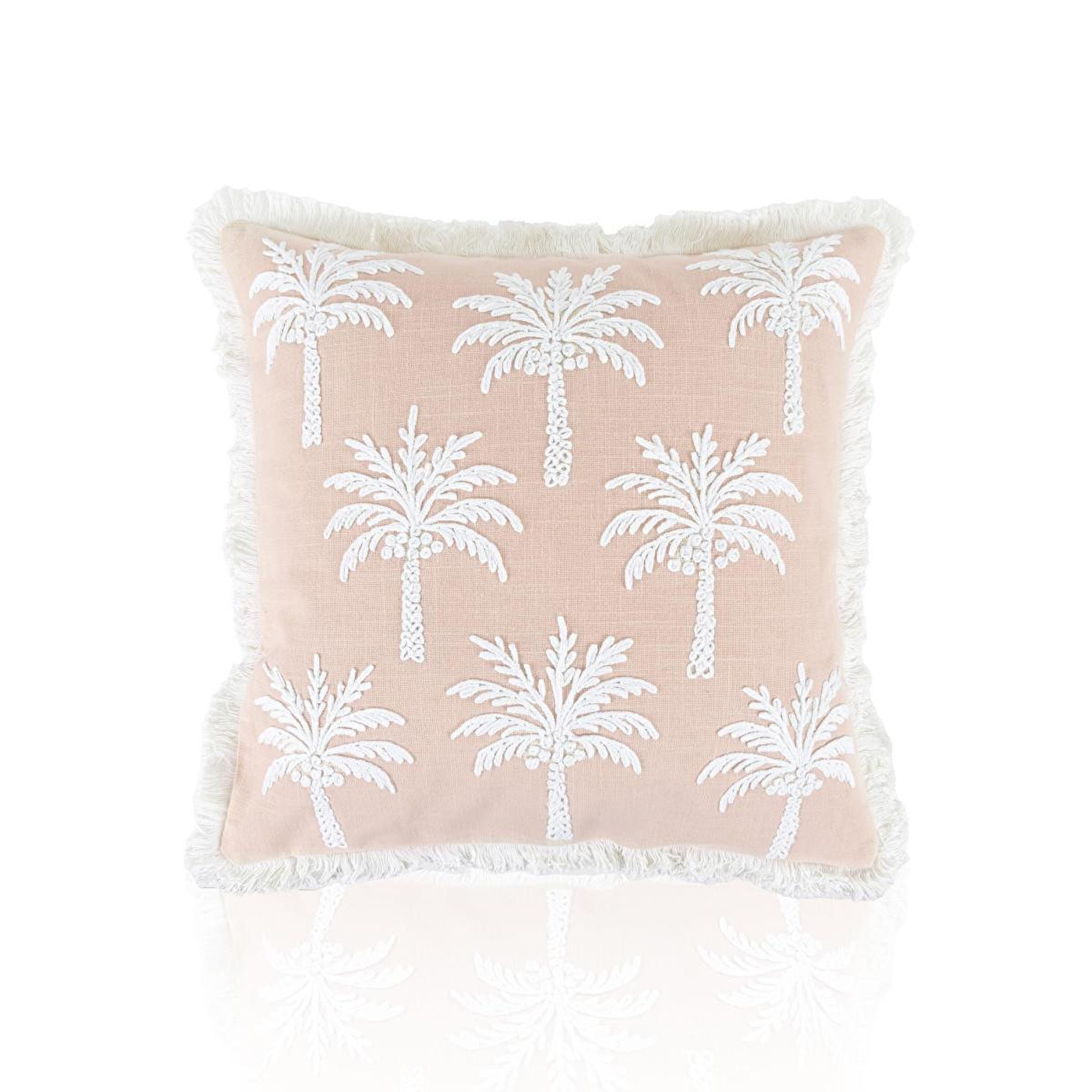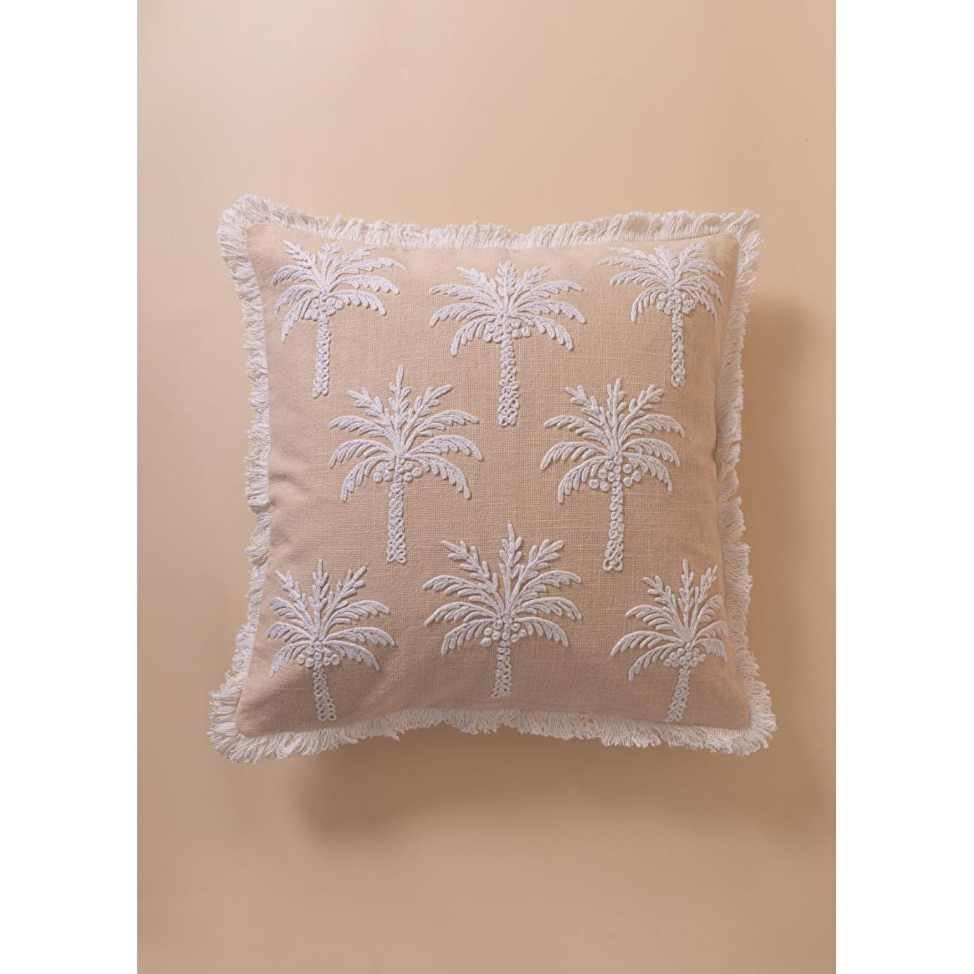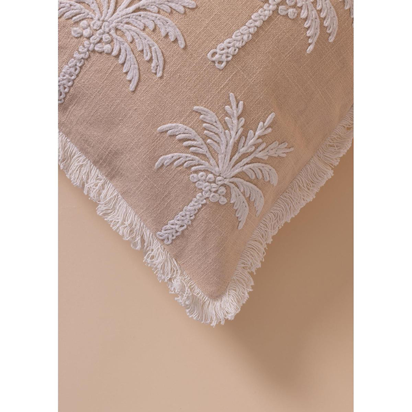 %100 pamuk dokuma kumaş sayesinde doğal ve nefes alabilen yapıKabartmalı palmiye deseni ile dekorasyonda güçlü bir stil vurgusuPudra tonuyla modern, bohem ve doğal dekorasyonlara uyumSaçak detaylarıyla hareketli ve özgün görünümFarklı renk ve dokularla kolay kombinlenebilir ölçüYıkama Talimatı