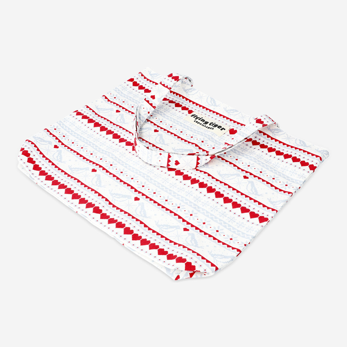 Flying Tiger Copenhagen Yılbaşı Desenli Kırmızı Beyaz Bez Çanta