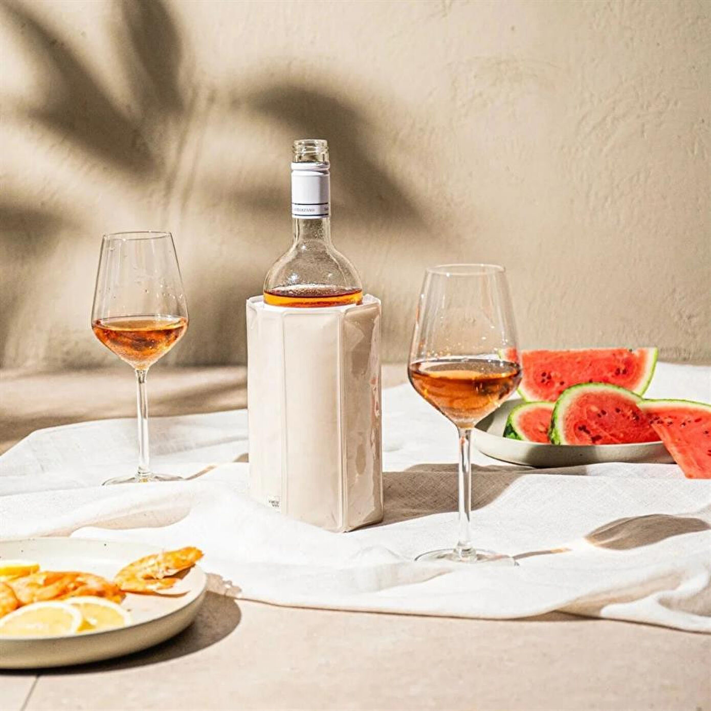 Vacu Vin Aktif Şarap Soğutucu, Gümüş rengiyle zarafet ve performansı bir araya getiriyor. Bu ürün, şarabınızı hızlı bir şekilde soğutarak içeceğinizin ideal sıcaklıkta kalmasını sağlıyor. Aktif soğutma özelliği sayesinde şarap şişesine sıkıca oturan ve içeceğinizi serin tutan bu şarap soğutucu, şık ve modern bir görünüme sahip.