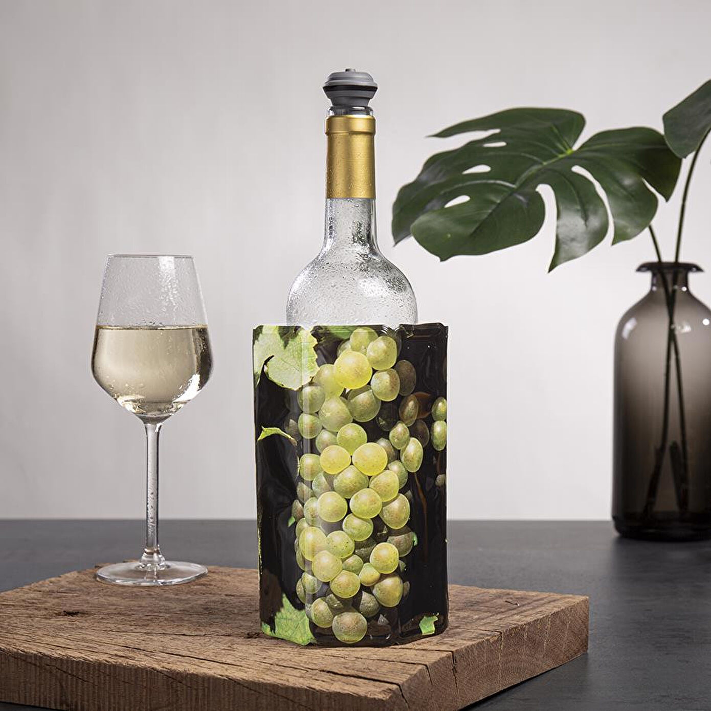 Vacu Vin Üzüm Desenli Aktif Şarap Soğutucu, şarap şişesine sıkıca oturarak içeceğinizi serin tutar. Şık ve pratik tasarımıyla kolayca kullanılabilir ve herhangi bir parti veya şarap tadım etkinliği için ideal bir eşlikçidir. Şarap severlerin vazgeçilmez aksesuarı olarak öne çıkan bu ürün, şarap keyfinizi daha da özelleştirmenize yardımcı olur.