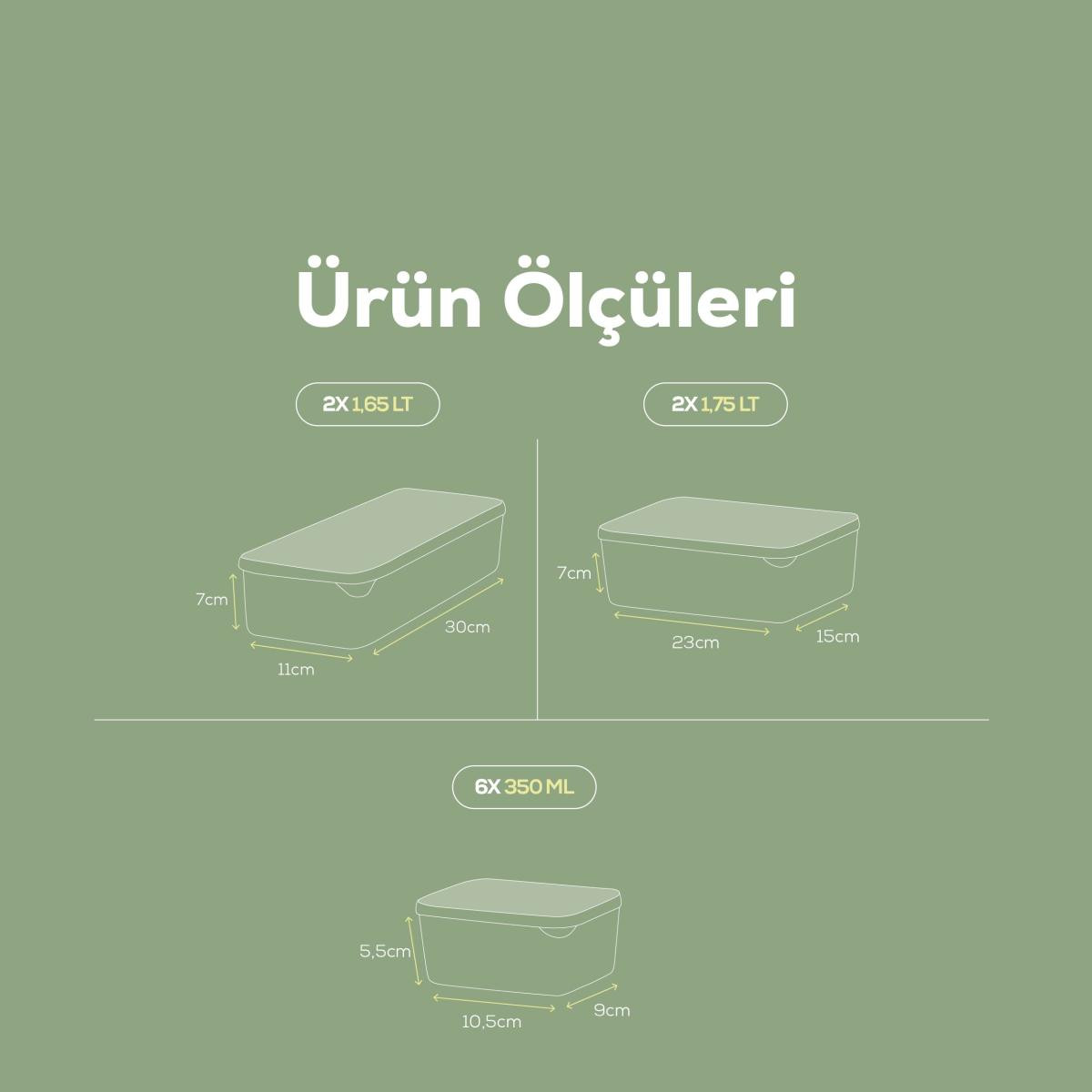 Buzdolabı düzenleyici saklama kabı, mutfağınızı düzenli ve temiz tutmak için mükemmel bir çözümdür. Yiyeceklerinizi düzenlemek, taze tutmak ve buzdolabınızda daha fazla alan yaratmak için ideal bir üründür. Set içeriği: 10 adet saklama kabı 6 adet 350 ml :9 x 10,5 x 5,5 cm 2 adet 1,65 lt: 11 x 30 x 7 cm 2 adet 1,75 lt: 23 x 15 x 7 cm Kullanım Alanları: Meyve ve Sebzeler: Taze meyve ve sebzelerinizi uzun süre taze tutar. Atıştırmalıklar: Kuruyemiş, bisküvi gibi atıştırmalıklarınızı düzenli bir şekilde saklar. Et ve Süt Ürünleri: Et, peynir, yoğurt gibi ürünlerinizi hijyenik bir şekilde saklar. Şeffaf Tasarım: İçindekileri kolayca görebilir ve ihtiyaçlarınıza hızlıca ulaşabilirsiniz. İstiflenebilir: Üst üste yerleştirilebilir tasarımı ile yerden tasarruf sağlar. Kolay Temizlik: Bulaşık makinesinde yıkanabilir, kolay temizlenir. Çok Amaçlı Kullanım: Sadece buzdolabında değil, aynı zamanda mutfak dolaplarında, buzlukta kullanılabilir.