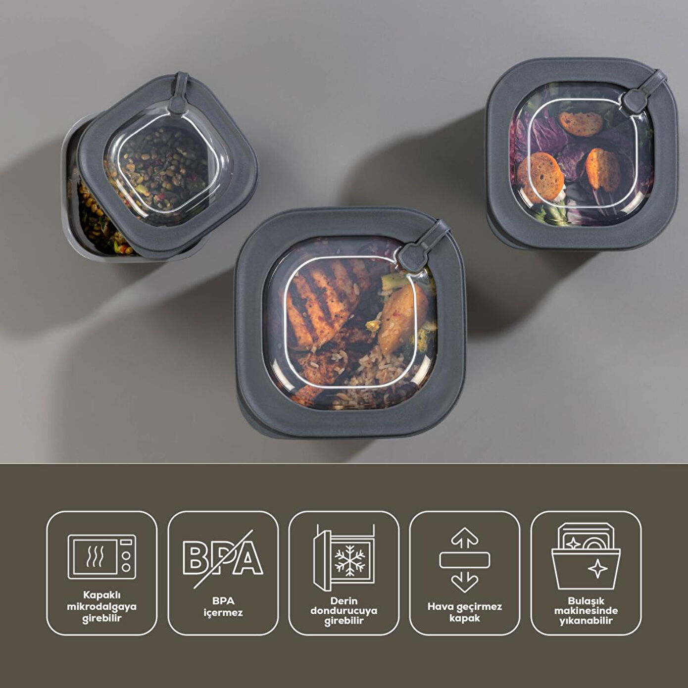Vienev 12'li 4x(600-1100-1800 Ml) Mikrodalga Ve Difrize Uygun Vip Kapaklı Özel Saklama Kabı Seti Antrasit