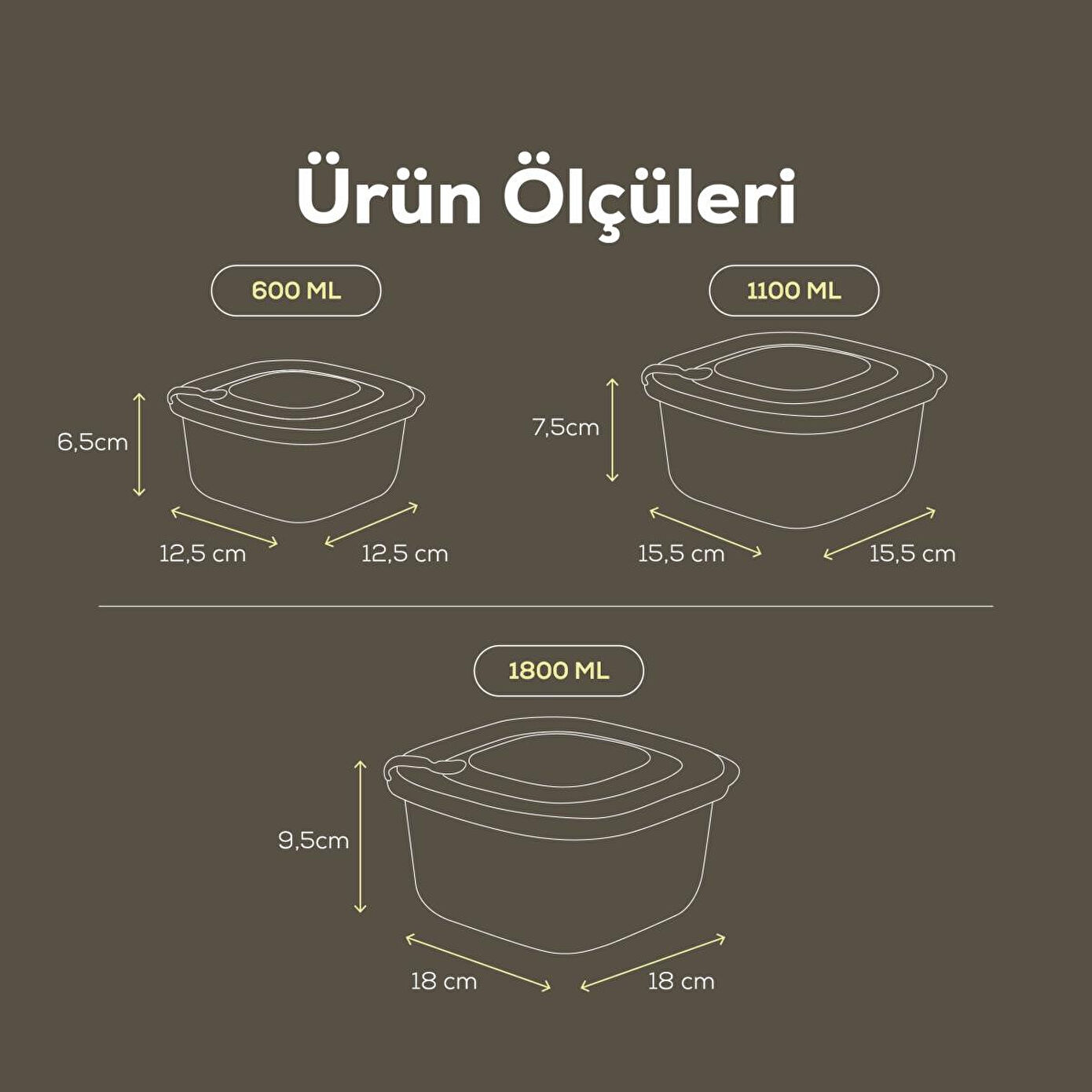 Günlük yaşamın pratik çözümü: 3'lü Mikrodalga ve Dondurucuya Uygun VIP Kapaklı Özel Saklama Kabı Seti! Bu set, farklı boyutlardaki üç kap ile yiyeceklerinizi en uygun şekilde saklamanızı sağlar.; Mikrodalga ve dondurucuya uygun yapısıyla yemeklerinizi hem hızlıca ısıtabilir hem de uzun süre taze tutabilirsiniz.; Ürün Hacim ve Ölçüleri: 600 ml : 12,5 x 12,5 x 7 cm 1100 ml : 15 x 15 x 8,5 cm 1800 ml : 18 x 18 x 10 cm Özellikler: Mikrodalgaya Uygun: BPA içermeyen malzemesi sayesinde güvenle yiyeceklerinizi ısıtabilirsiniz.; Dondurucu Dostu: Sağlam yapısı ile düşük sıcaklıklara dayanıklı, yiyeceklerinizi bozulmadan saklar.; VIP Kapak Teknolojisi: Kapaklarında ki kilit mekanizması tam açık konumda güvenle mikrodalga fırında kullanılabilir 3 Farklı Boyut: Çeşitli ihtiyaçlarınıza göre tasarlanmış farklı boyutlardaki kaplar.; Kolay Temizlik: Bulaşık makinesinde yıkanabilir, temizlemesi kolaydır.; Sağlıklı ve Güvenli: Yüksek kaliteli, gıda ile temasa uygun plastikten üretilmiştir.; Bu set, mutfaktaki işlerinizi kolaylaştırırken aynı zamanda şık tasarımıyla da dikkat çeker.; Hem işlevselliği hem de estetiği bir arada sunan 3'lü VIP Saklama Kabı Seti, mutfaktaki en büyük yardımcınız olacak!