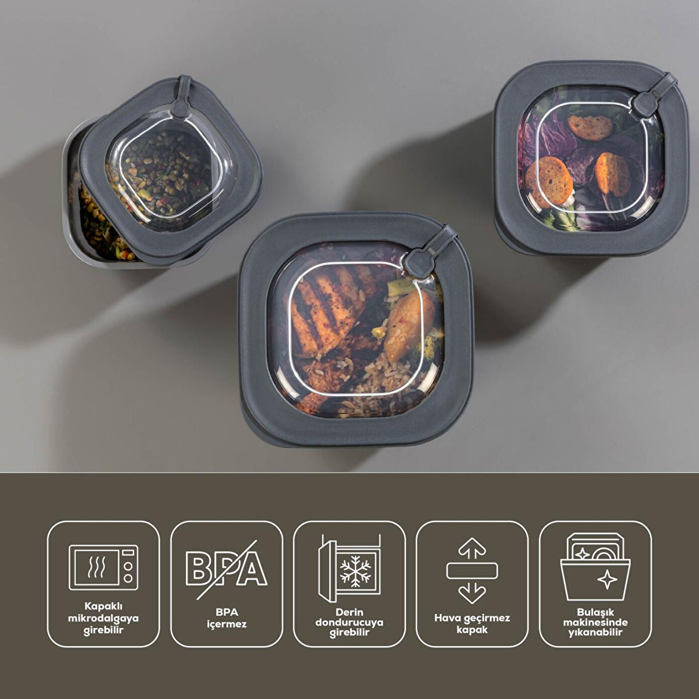 Günlük yaşamın pratik çözümü: 3'lü Mikrodalga ve Dondurucuya Uygun VIP Kapaklı Özel Saklama Kabı Seti! Bu set, farklı boyutlardaki üç kap ile yiyeceklerinizi en uygun şekilde saklamanızı sağlar.; ; Mikrodalga ve dondurucuya uygun yapısıyla yemeklerinizi hem hızlıca ısıtabilir hem de uzun süre taze tutabilirsiniz.; ; Ürün Hacim ve Ölçüleri: ; 600 ml : 12,5 x 12,5 x 7 cm ; 1100 ml : 15 x 15 x 8,5 cm ; 1800 ml : 18 x 18 x 10 cm ; Özellikler: ; Mikrodalgaya Uygun: BPA içermeyen malzemesi sayesinde güvenle yiyeceklerinizi ısıtabilirsiniz.; ; Dondurucu Dostu: Sağlam yapısı ile düşük sıcaklıklara dayanıklı, yiyeceklerinizi bozulmadan saklar.; ; VIP Kapak Teknolojisi: Kapaklarında ki kilit mekanizması tam açık konumda güvenle mikrodalga fırında kullanılabilir ; 3 Farklı Boyut: Çeşitli ihtiyaçlarınıza göre tasarlanmış farklı boyutlardaki kaplar.; ; Kolay Temizlik: Bulaşık makinesinde yıkanabilir, temizlemesi kolaydır.; ; Sağlıklı ve Güvenli: Yüksek kaliteli, gıda ile temasa uygun plastikten üretilmiştir.; ; Bu set, mutfaktaki işlerinizi kolaylaştırırken aynı zamanda şık tasarımıyla da dikkat çeker.; ; Hem işlevselliği hem de estetiği bir arada sunan 3'lü VIP Saklama Kabı Seti, mutfaktaki en büyük yardımcınız olacak! ;