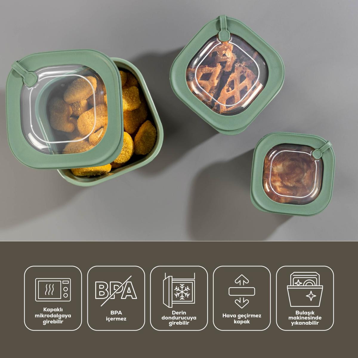 Günlük yaşamın pratik çözümü: 3'lü Mikrodalga ve Dondurucuya Uygun VIP Kapaklı Özel Saklama Kabı Seti! Bu set, farklı boyutlardaki üç kap ile yiyeceklerinizi en uygun şekilde saklamanızı sağlar.; Mikrodalga ve dondurucuya uygun yapısıyla yemeklerinizi hem hızlıca ısıtabilir hem de uzun süre taze tutabilirsiniz.; Ürün Hacim ve Ölçüleri: 600 ml : 12,5 x 12,5 x 7 cm 1100 ml : 15 x 15 x 8,5 cm 1800 ml : 18 x 18 x 10 cm Özellikler: Mikrodalgaya Uygun: BPA içermeyen malzemesi sayesinde güvenle yiyeceklerinizi ısıtabilirsiniz.; Dondurucu Dostu: Sağlam yapısı ile düşük sıcaklıklara dayanıklı, yiyeceklerinizi bozulmadan saklar.; VIP Kapak Teknolojisi: Kapaklarında ki kilit mekanizması tam açık konumda güvenle mikrodalga fırında kullanılabilir 3 Farklı Boyut: Çeşitli ihtiyaçlarınıza göre tasarlanmış farklı boyutlardaki kaplar.; Kolay Temizlik: Bulaşık makinesinde yıkanabilir, temizlemesi kolaydır.; Sağlıklı ve Güvenli: Yüksek kaliteli, gıda ile temasa uygun plastikten üretilmiştir.; Bu set, mutfaktaki işlerinizi kolaylaştırırken aynı zamanda şık tasarımıyla da dikkat çeker.; Hem işlevselliği hem de estetiği bir arada sunan 3'lü VIP Saklama Kabı Seti, mutfaktaki en büyük yardımcınız olacak!
