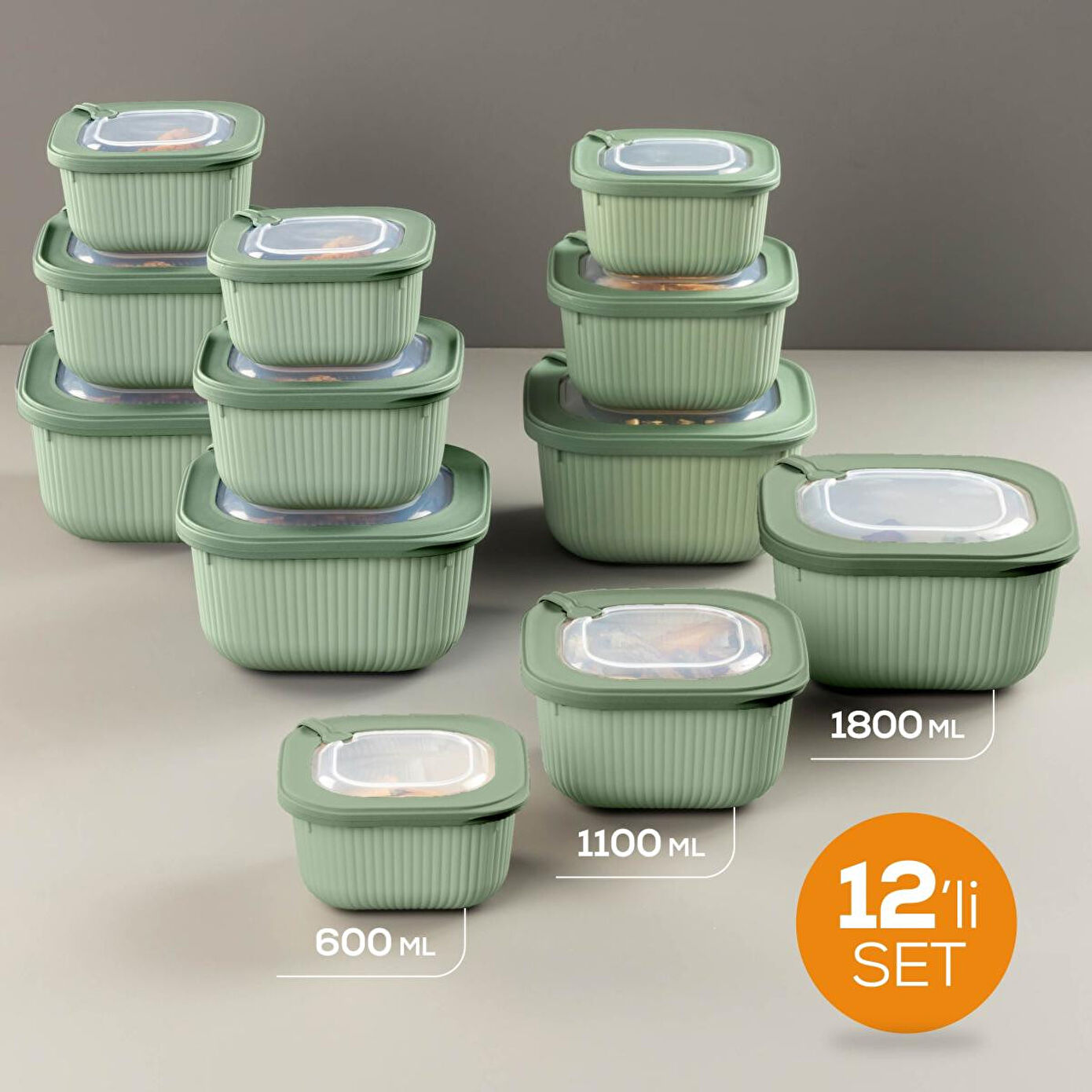 Vienev 12'li 4x(600-1100-1800 Ml) Mikrodalga Ve Difrize Uygun Vip Kapaklı Özel Saklama Kabı Seti Yeşil