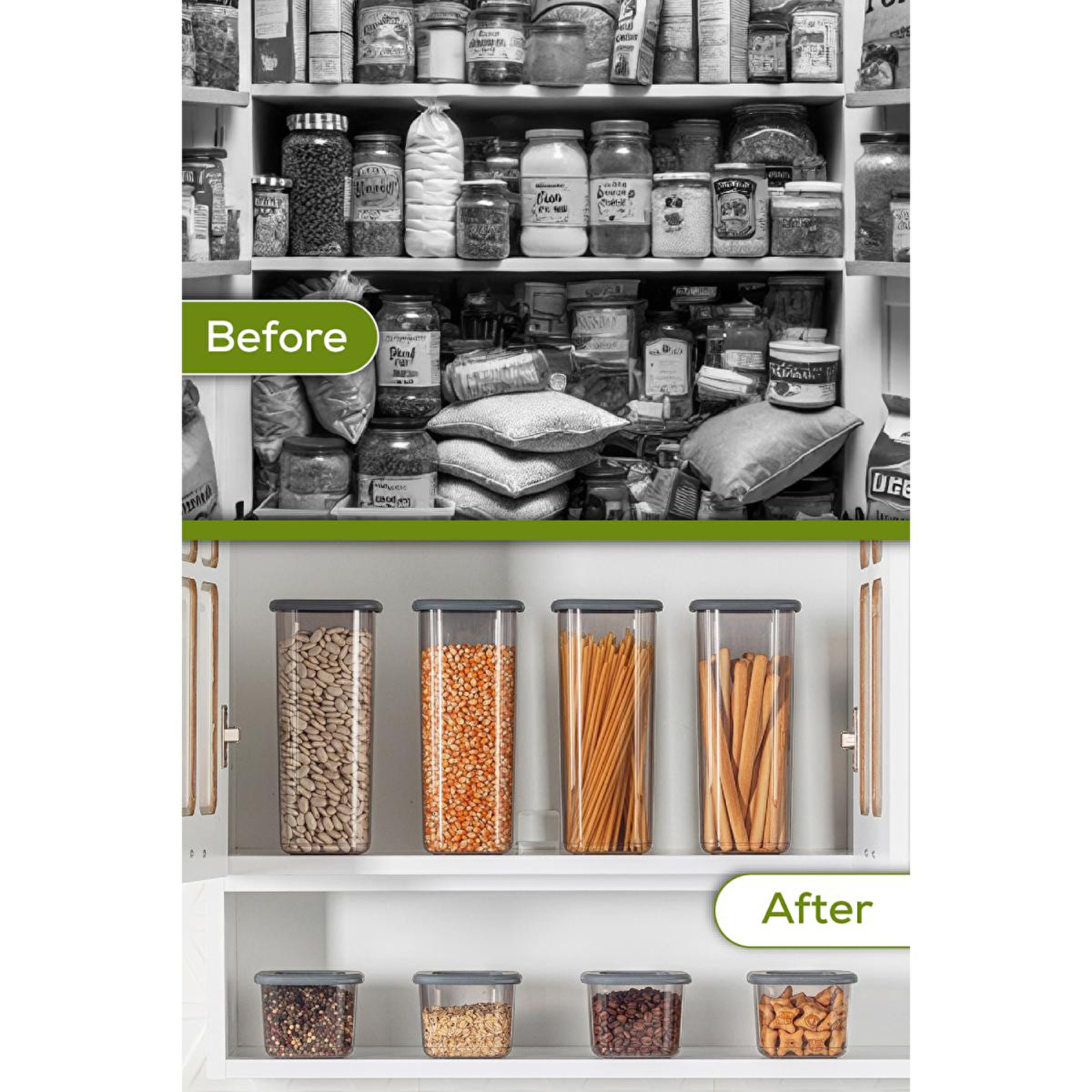 - Farklı büyüklükteki kaplar, çeşitli gıda maddeleri için esnek bir depolama çözümü sunar.