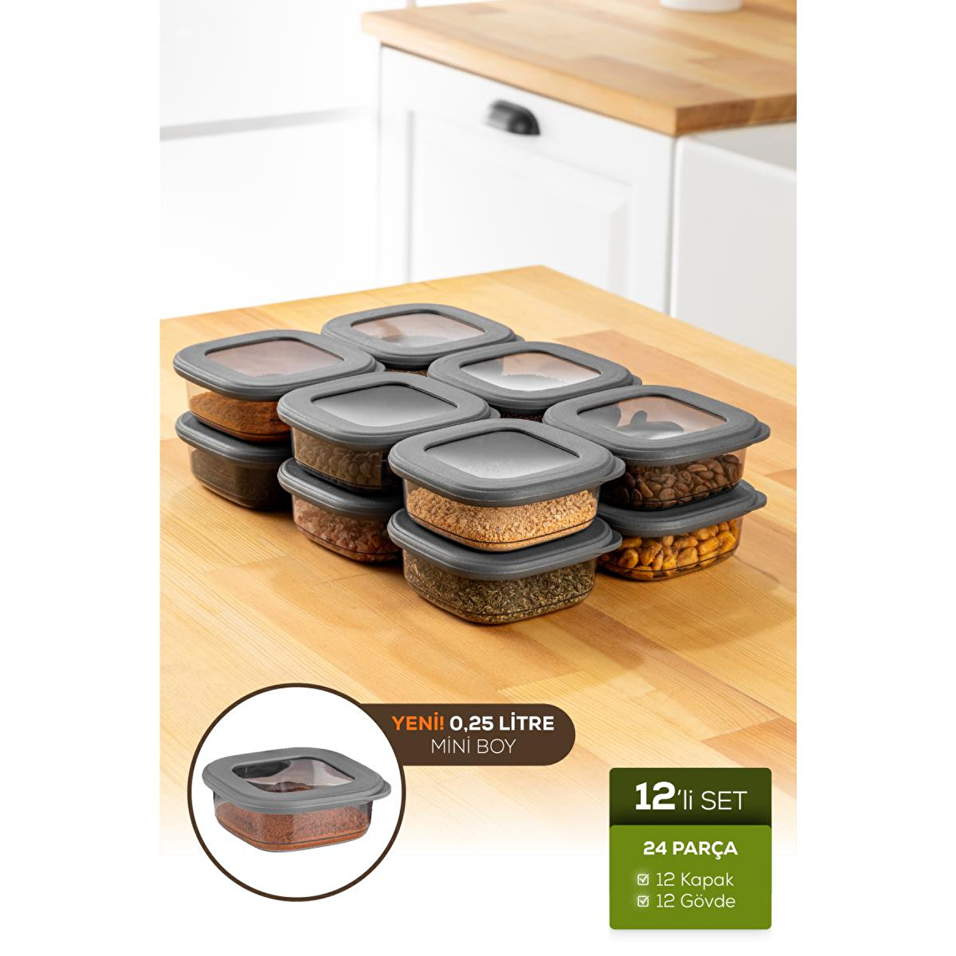 - Set İçeriği: 12 adet 0,25 litre erzak saklama kabı