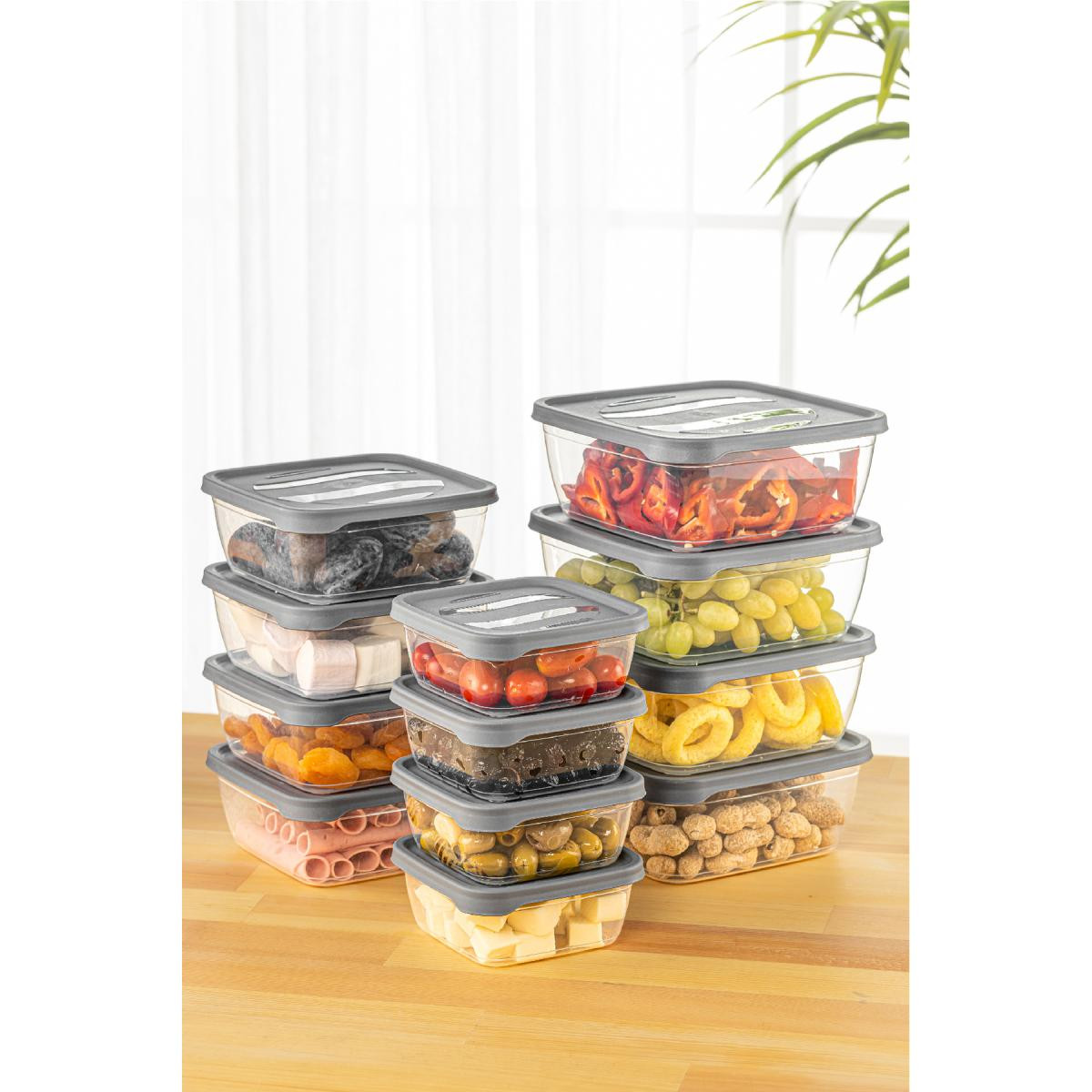 Vienev 12'li Kare Mikrodalga Içi Saklama Kabı Seti-sebze Meyve Et Saklama Kabı 4x(500-1000-1600 Ml)antrasit