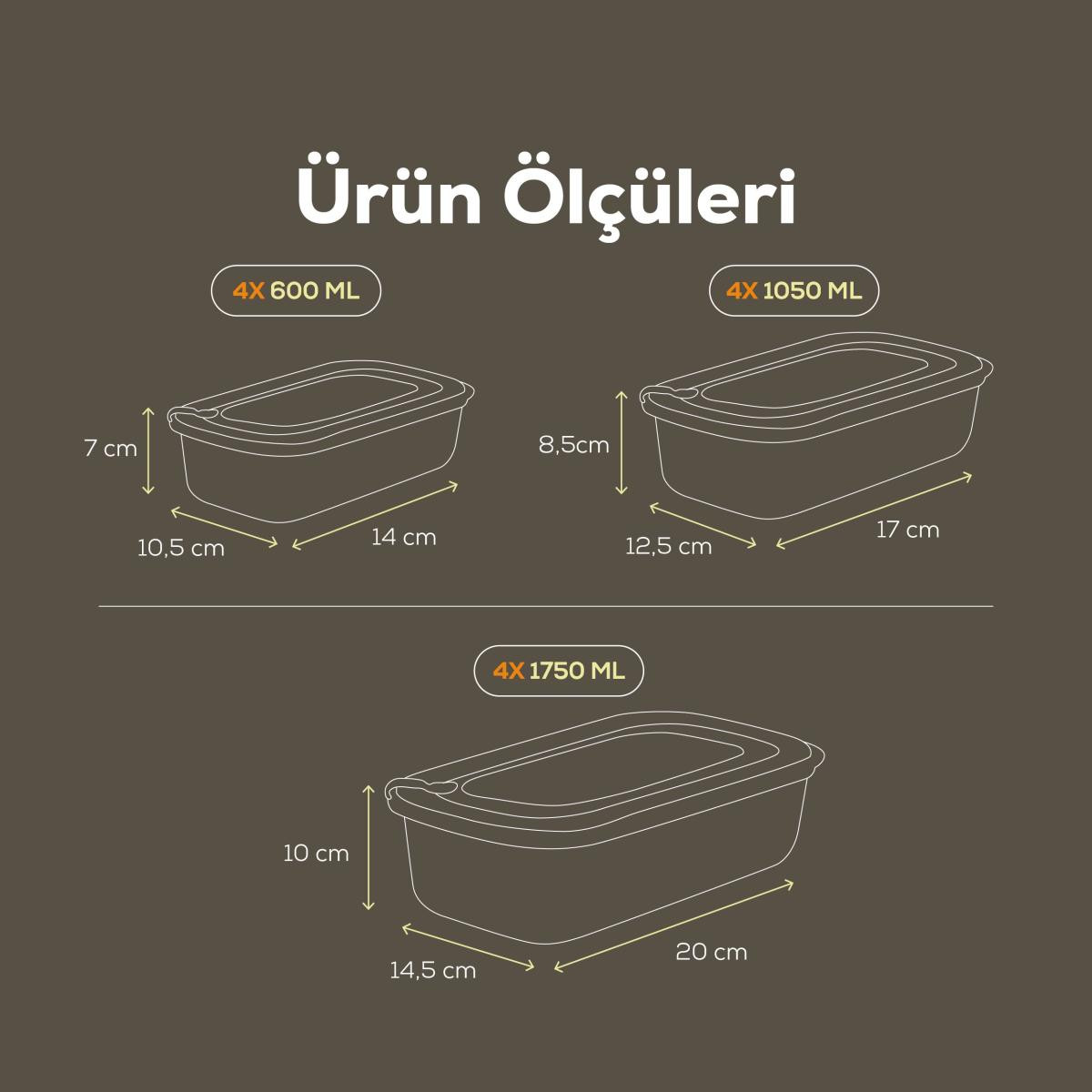 Günlük yaşamın pratik çözümü: 12'li Mikrodalga ve Dondurucuya Uygun VIP Kapaklı Özel Saklama Kabı Seti! Bu set, farklı boyutlardaki üç kap ile yiyeceklerinizi en uygun şekilde saklamanızı sağlar.; ; Mikrodalga ve dondurucuya uygun yapısıyla yemeklerinizi hem hızlıca ısıtabilir hem de uzun süre taze tutabilirsiniz.; ; Ürün Hacim ve Ölçüleri: ; 4 Adet 600 ml : 10,5 x 14 x 7 cm ; 4 Adet 1050 ml : 12,5 x 17 x 8,5 cm ; 4 Adet 1750 ml : 14,5 x 20 x 10 cm ; Özellikler: ; Mikrodalgaya Uygun: BPA içermeyen malzemesi sayesinde güvenle yiyeceklerinizi ısıtabilirsiniz.; ; Dondurucu Dostu: Sağlam yapısı ile düşük sıcaklıklara dayanıklı, yiyeceklerinizi bozulmadan saklar.; ; VIP Kapak Teknolojisi: Kapaklarında ki kilit mekanizması tam açık konumda güvenle mikrodalga fırında kullanılabilir ; 3 Farklı Boyut: Çeşitli ihtiyaçlarınıza göre tasarlanmış farklı boyutlardaki kaplar.; ; Kolay Temizlik: Bulaşık makinesinde yıkanabilir, temizlemesi kolaydır.; ; Sağlıklı ve Güvenli: Yüksek kaliteli, gıda ile temasa uygun plastikten üretilmiştir.; ; Bu set, mutfaktaki işlerinizi kolaylaştırırken aynı zamanda şık tasarımıyla da dikkat çeker.; ; Hem işlevselliği hem de estetiği bir arada sunan 12'li VIP Saklama Kabı Seti, mutfaktaki en büyük yardımcınız olacak! ;