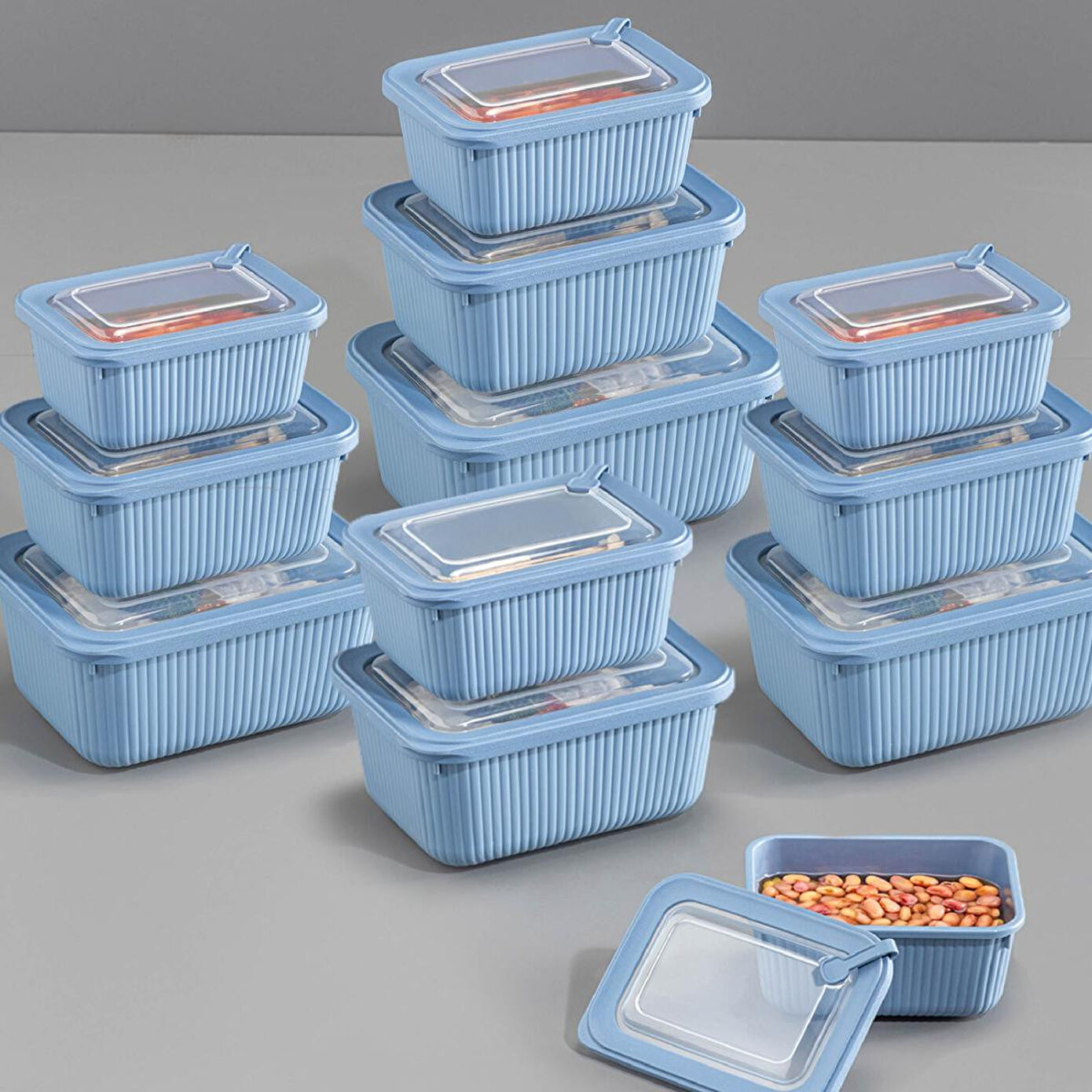 Vienev 12'li Vip Dikdörtgen Mikrodalga Ve Difrize Uygun Saklama Kabı Seti Mavi 4x(1750,1050,600 Ml)