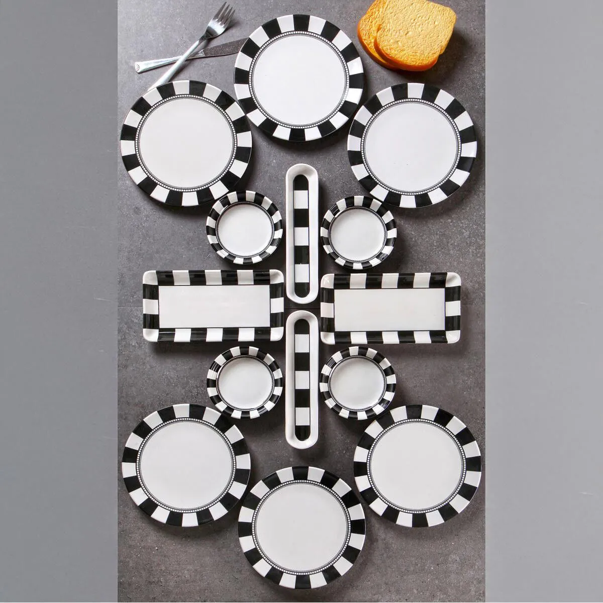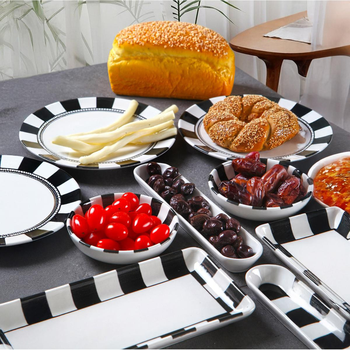 Vienev 14 Parça 6 Kişilik Handmade Dama Desen Kahvaltı Takımı - Lüx Kahvaltılık Sunum Seti