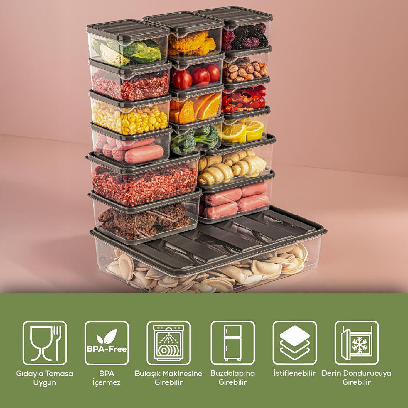 Vienev 17'li Buzdolabı Düzenleyici Organizer Mikrodalgaya Uygun Difriz Saklama Kabı Gri