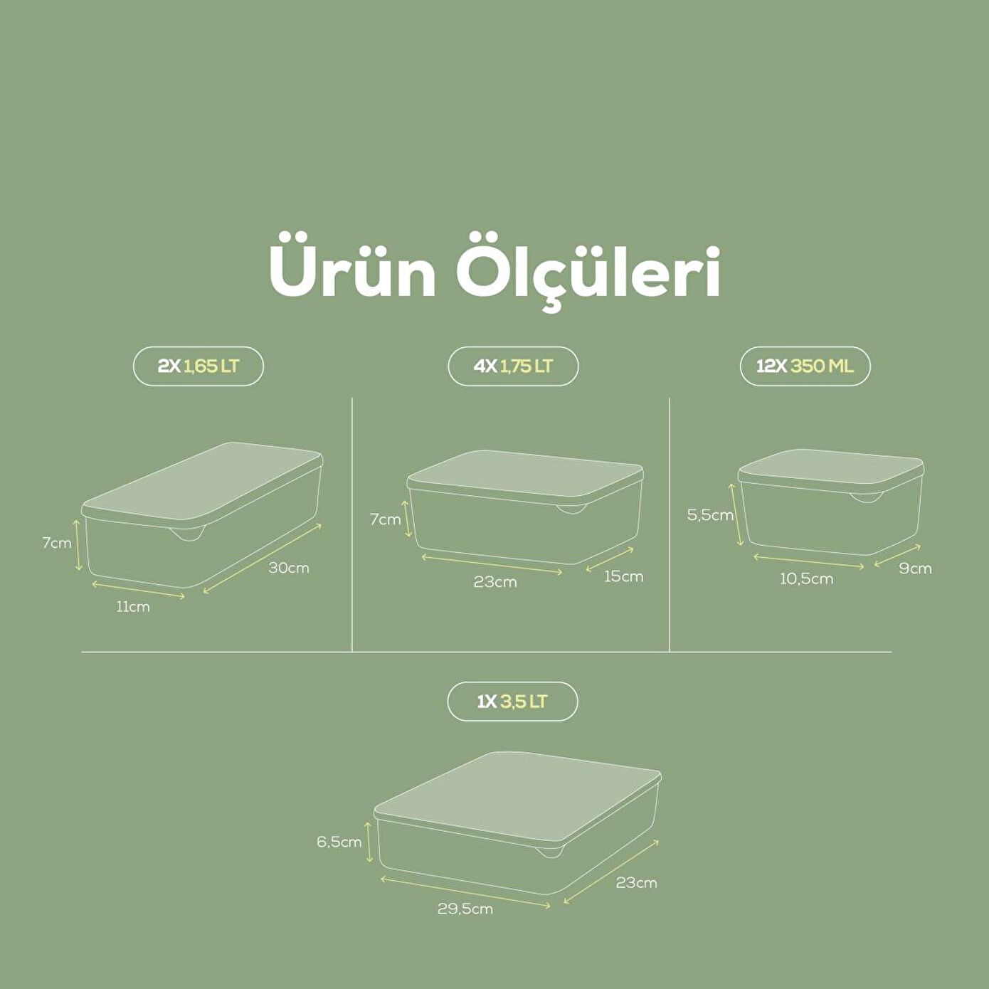 Buzdolabı düzenleyici saklama kabı, mutfağınızı düzenli ve temiz tutmak için mükemmel bir çözümdür. Yiyeceklerinizi düzenlemek, taze tutmak ve buzdolabınızda daha fazla alan yaratmak için ideal bir üründür. Set içeriği: 19 adet saklama kabı 12 adet 350 ml :9 x 10,5 x 5,5 cm 2 adet 1,65 lt: 11 x 30 x 7 cm 4 adet 1,75 lt: 23 x 15 x 7 cm 1 adet 3,5 lt: 23 x 29,5 x 6,5 cm Kullanım Alanları: Meyve ve Sebzeler: Taze meyve ve sebzelerinizi uzun süre taze tutar. Atıştırmalıklar: Kuruyemiş, bisküvi gibi atıştırmalıklarınızı düzenli bir şekilde saklar. Et ve Süt Ürünleri: Et, peynir, yoğurt gibi ürünlerinizi hijyenik bir şekilde saklar. Şeffaf Tasarım: İçindekileri kolayca görebilir ve ihtiyaçlarınıza hızlıca ulaşabilirsiniz. İstiflenebilir: Üst üste yerleştirilebilir tasarımı ile yerden tasarruf sağlar. Kolay Temizlik: Bulaşık makinesinde yıkanabilir, kolay temizlenir. Çok Amaçlı Kullanım: Sadece buzdolabında değil, aynı zamanda mutfak dolaplarında, buzlukta kullanılabilir.
