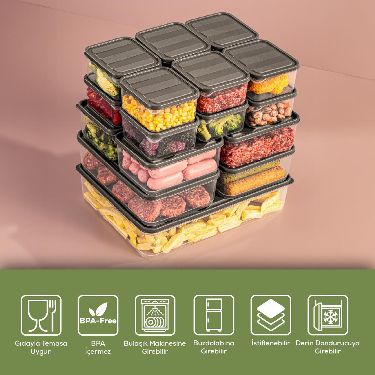Vienev 19'lu Buzdolabı Düzenleyici Organizer Mikrodalgaya Uygun Difriz Saklama Kabı Gri