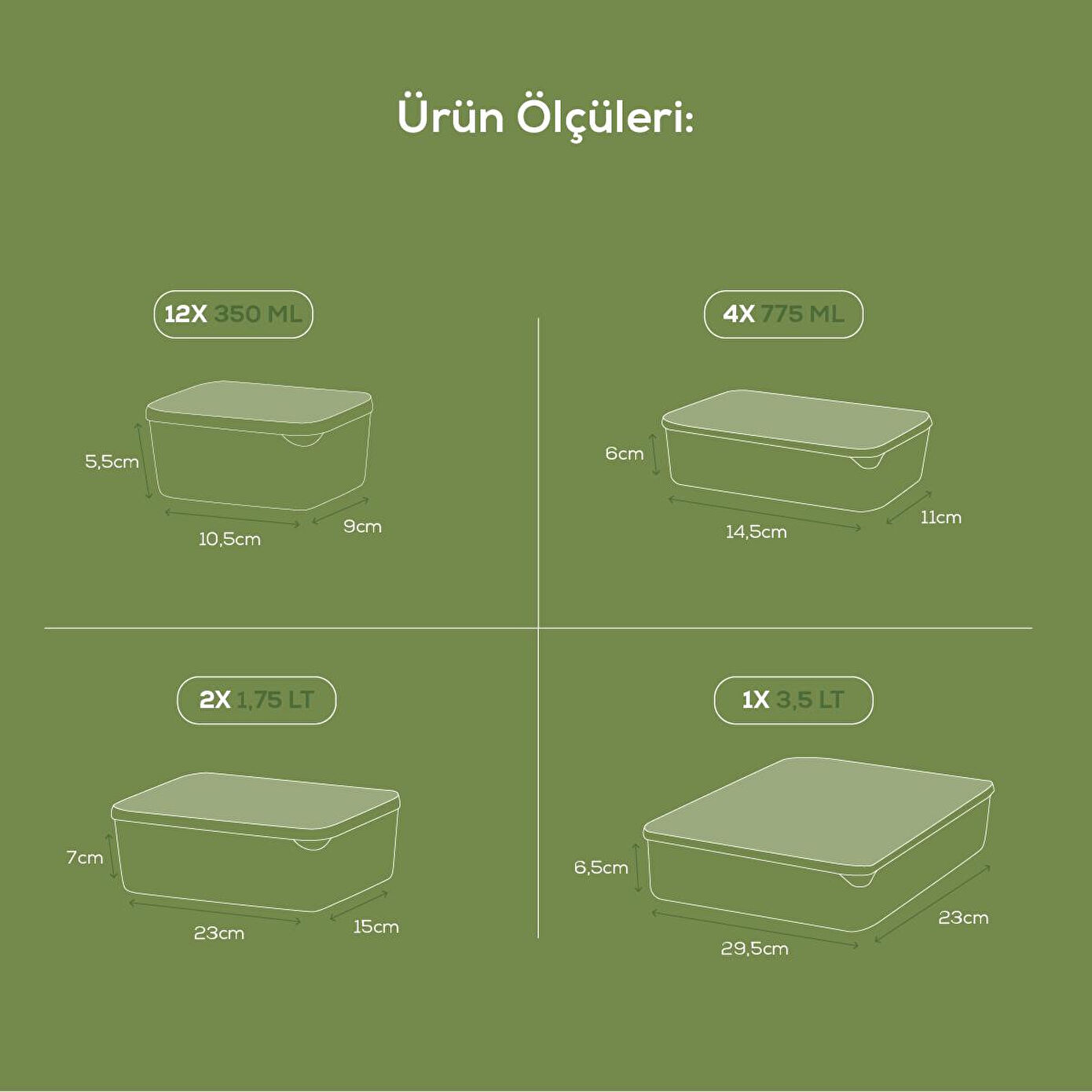 Buzdolabı düzenleyici saklama kabı, mutfağınızı düzenli ve temiz tutmak için mükemmel bir çözümdür. Yiyeceklerinizi düzenlemek, taze tutmak ve buzdolabınızda daha fazla alan yaratmak için ideal bir üründür. Ürün Ölçüleri: 350 ml :9 x 10,5 x 5,5 cm 775 ml: 11x14,5x6 cm 1,75 lt: 23 x 15 x 7 cm 3,5 lt: 23 x 29,5 x 6,5 cm Kullanım Alanları: Meyve ve Sebzeler: Taze meyve ve sebzelerinizi uzun süre taze tutar. Atıştırmalıklar: Kuruyemiş, bisküvi gibi atıştırmalıklarınızı düzenli bir şekilde saklar. Et ve Süt Ürünleri: Et, peynir, yoğurt gibi ürünlerinizi hijyenik bir şekilde saklar. Şeffaf Tasarım: İçindekileri kolayca görebilir ve ihtiyaçlarınıza hızlıca ulaşabilirsiniz. İstiflenebilir: Üst üste yerleştirilebilir tasarımı ile yerden tasarruf sağlar. Kolay Temizlik: Bulaşık makinesinde yıkanabilir, kolay temizlenir. Çok Amaçlı Kullanım: Sadece buzdolabında değil, aynı zamanda mutfak dolaplarında, buzlukta kullanılabilir.