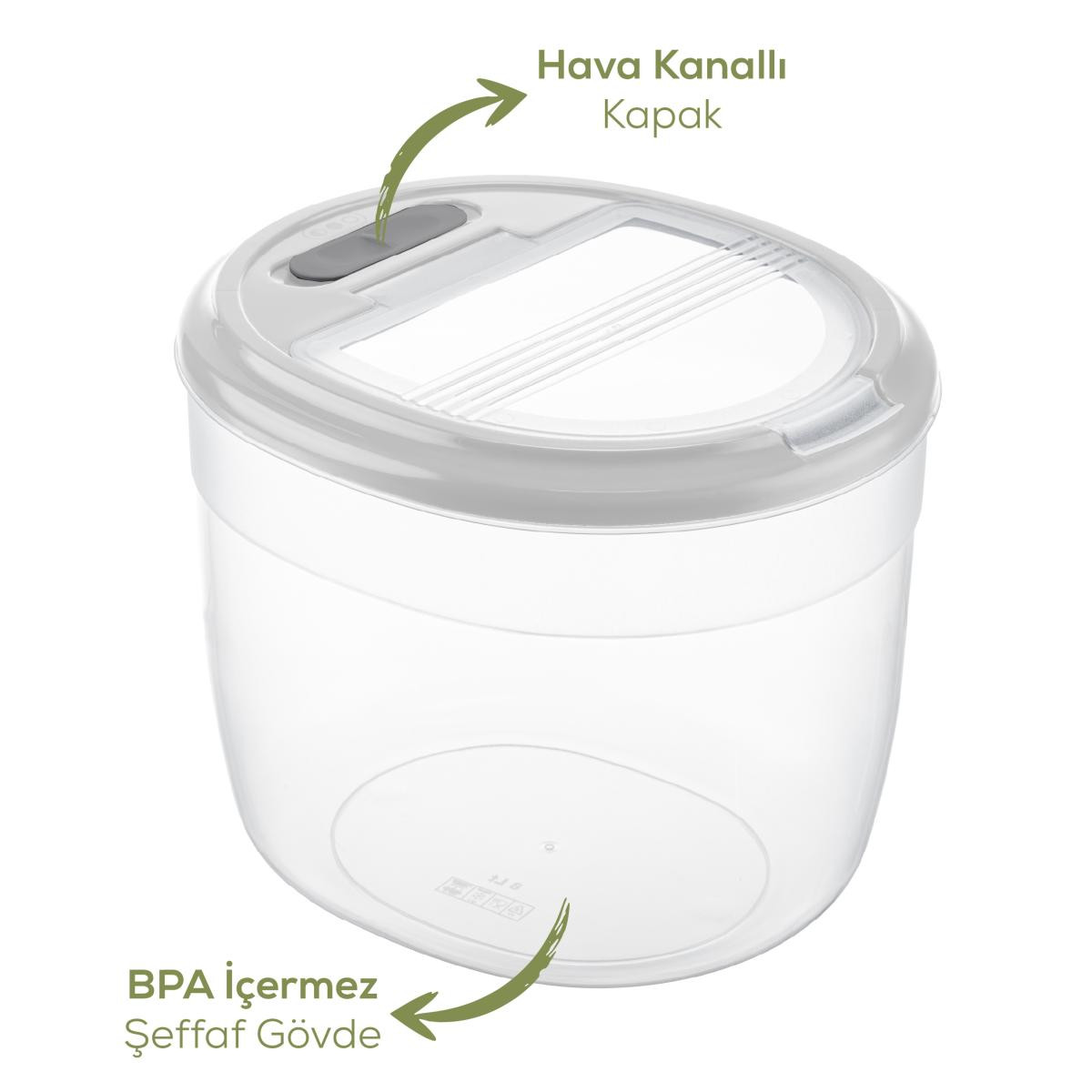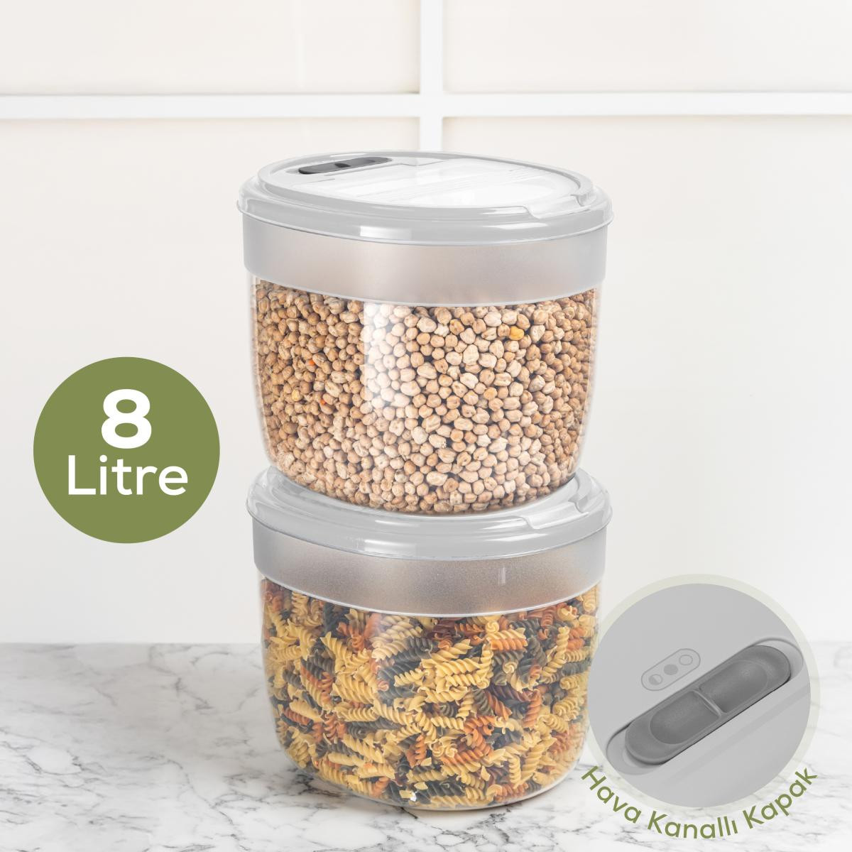 Vienev 2'li 8 Litre Büyük Boy Plastik Saklama Kabı – Açık Gri Kapaklı