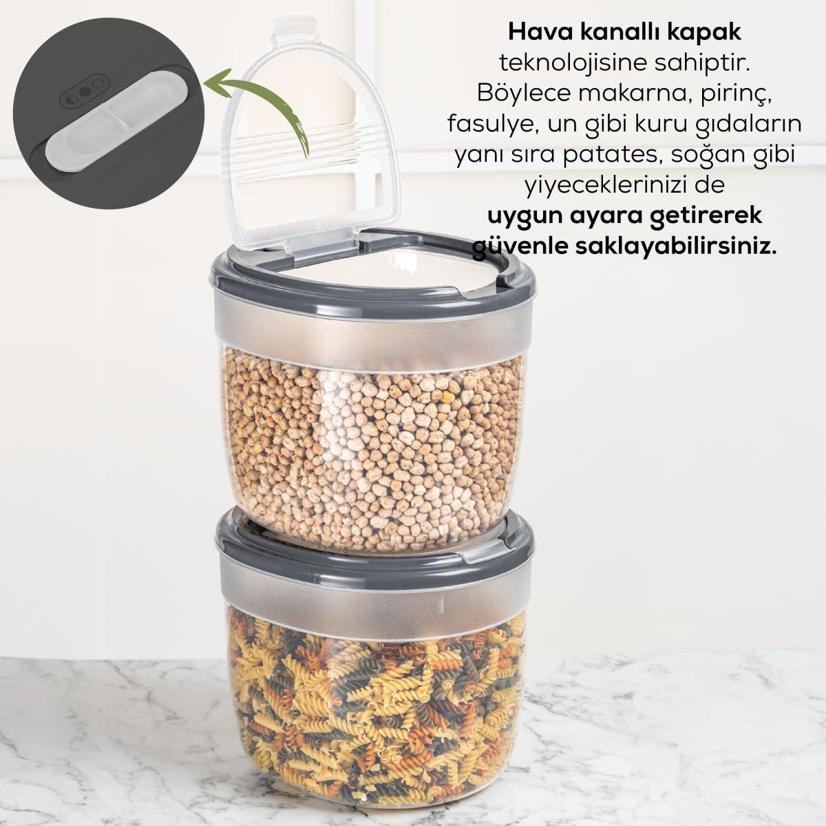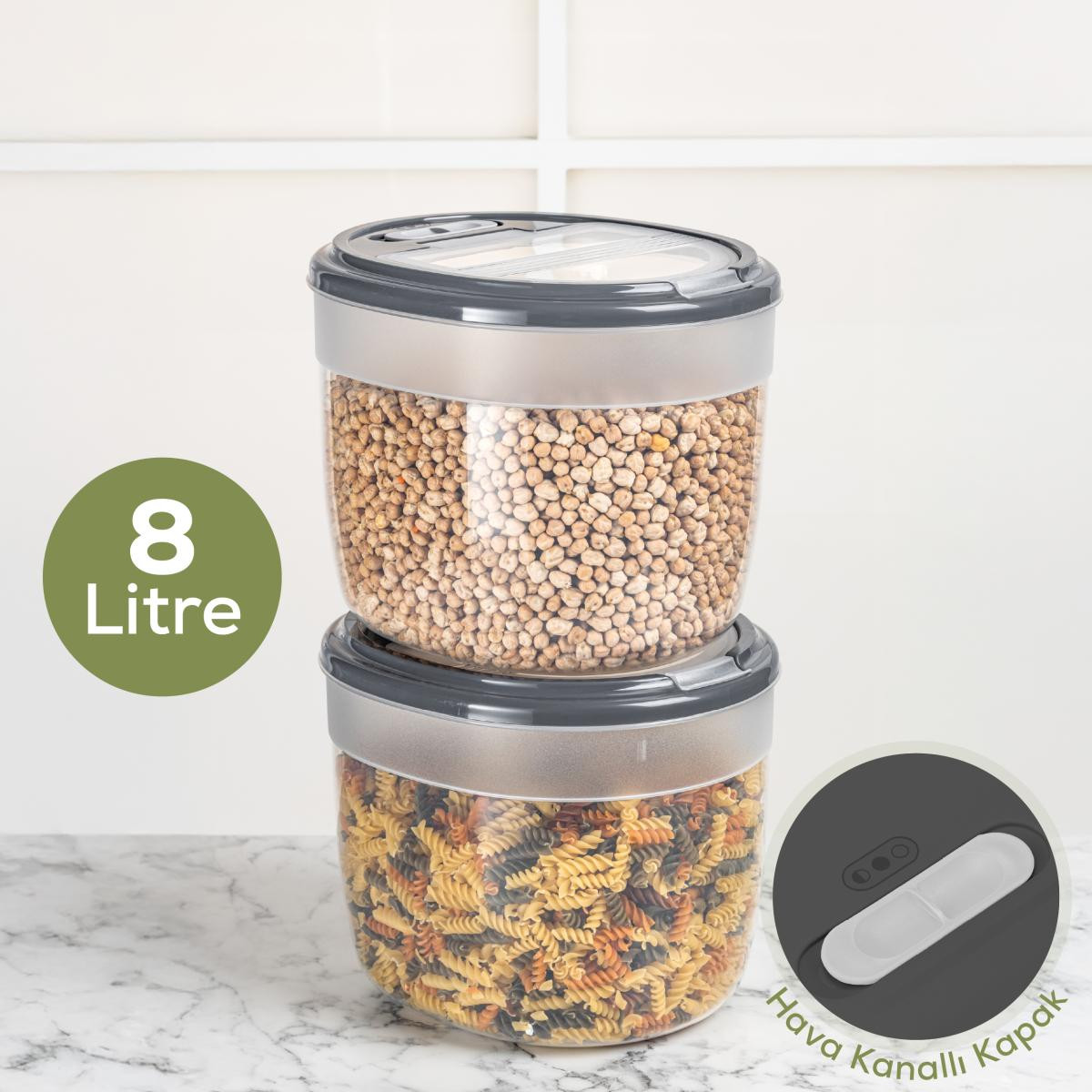 Vienev 2'li 8 Litre Büyük Boy Plastik Saklama Kabı – Koyu Gri Kapaklı
