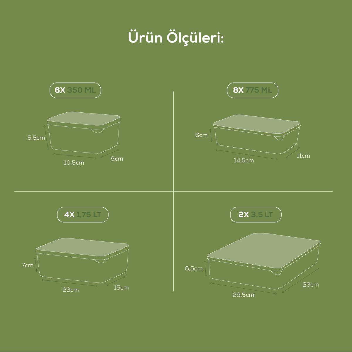 Buzdolabı düzenleyici saklama kabı, mutfağınızı düzenli ve temiz tutmak için mükemmel bir çözümdür. Yiyeceklerinizi düzenlemek, taze tutmak ve buzdolabınızda daha fazla alan yaratmak için ideal bir üründür. Ürün Ölçüleri: 350 ml :9 x 10,5 x 5,5 cm 775 ml: 11x14,5x6 cm 1,65 lt: 11 x 30 x 7 cm 3,5 lt: 23 x 29,5 x 6,5 cm Kullanım Alanları: Meyve ve Sebzeler: Taze meyve ve sebzelerinizi uzun süre taze tutar. Atıştırmalıklar: Kuruyemiş, bisküvi gibi atıştırmalıklarınızı düzenli bir şekilde saklar. Et ve Süt Ürünleri: Et, peynir, yoğurt gibi ürünlerinizi hijyenik bir şekilde saklar. Şeffaf Tasarım: İçindekileri kolayca görebilir ve ihtiyaçlarınıza hızlıca ulaşabilirsiniz. İstiflenebilir: Üst üste yerleştirilebilir tasarımı ile yerden tasarruf sağlar. Kolay Temizlik: Bulaşık makinesinde yıkanabilir, kolay temizlenir. Çok Amaçlı Kullanım: Sadece buzdolabında değil, aynı zamanda mutfak dolaplarında, buzlukta kullanılabilir.