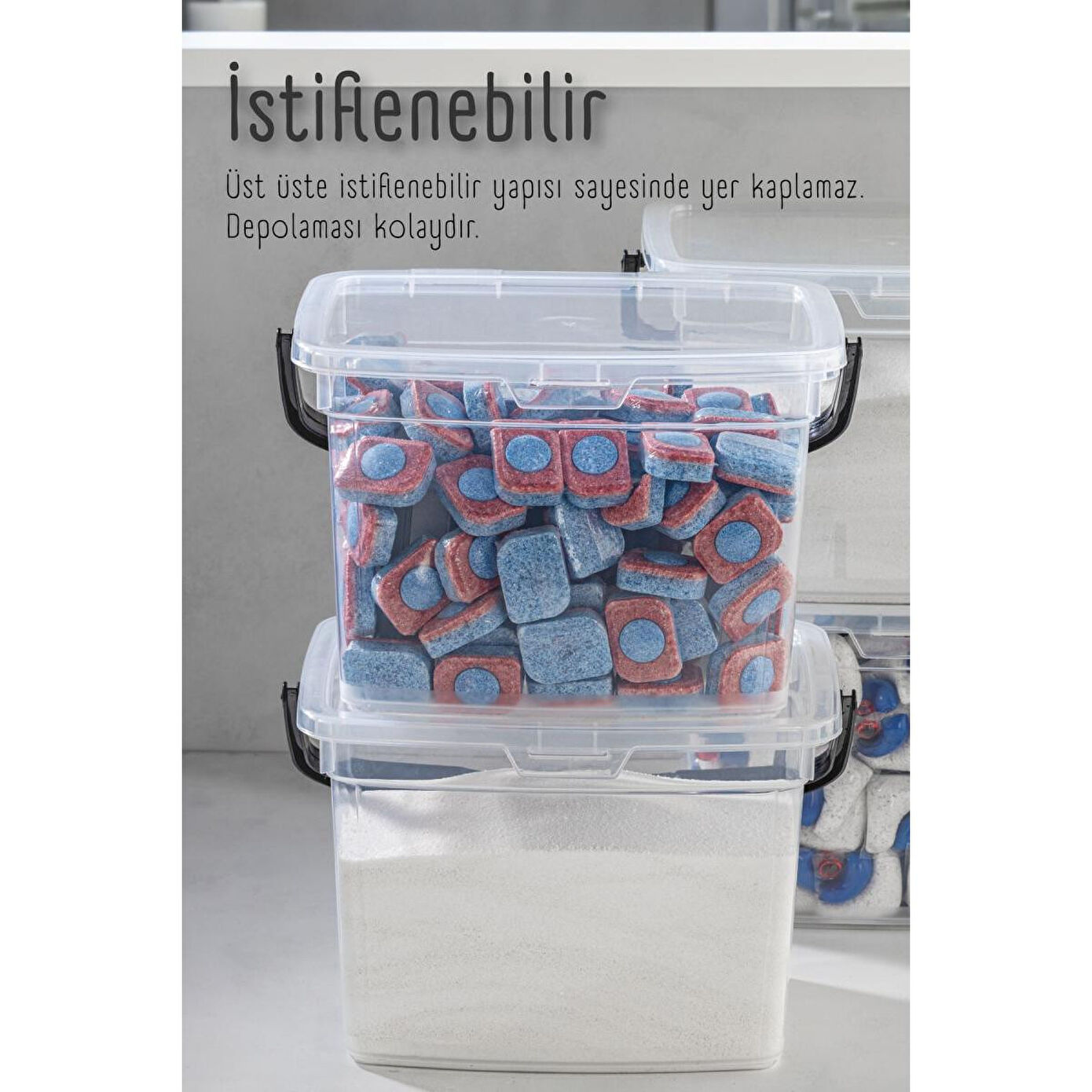 Vienev 2li 4 Litre Toz Tablet Deterjan Saklama Kabı - Deterjan Kutusu, Toz Tablet Deterjan Kabı Beyaz