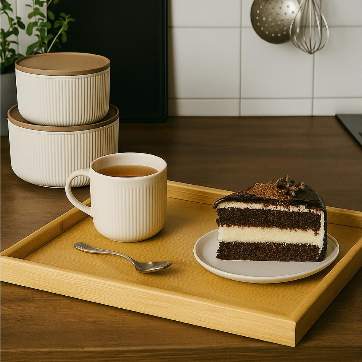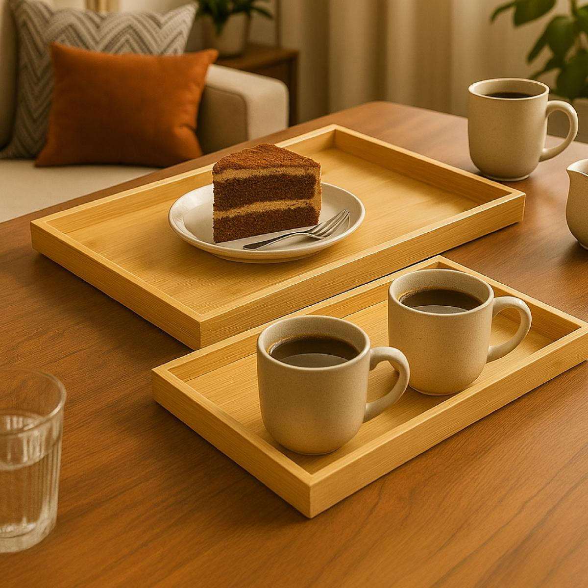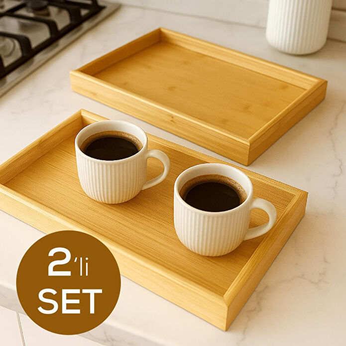 Doğal Bambu 2'li Ahşap Tepsi Seti | 40x30 cm & 35x25 cm | Sunum ve Servis Tepsisi Doğal bambu malzemeden üretilmiş bu 2’li ahşap tepsi seti, hem mutfakta hem sofrada şıklığı ve fonksiyonelliği bir araya getiriyor. Farklı boyutları sayesinde kullanım kolaylığı sağlar, sunumlarınıza estetik bir dokunuş katar. Ürün Özellikleri: Set İçeriği: 2 adet bambu tepsi Büyük Tepsi Ölçüsü: 40 x 30 x 4 cm Küçük Tepsi Ölçüsü: 35 x 25 x 4 cm Yükseklik: 4 cm Malzeme: Doğal Bambu Kaplama Renk: Doğal ahşap görünümü Kullanım Alanları: Kahvaltı, sunum, dekorasyon, servis Öne Çıkanlar: Doğal ve çevre dostu malzeme Dayanıklı, hafif ve uzun ömürlü Minimal ve modern tasarım Kolay temizlenebilir yüzey Bu bambu tepsiler hem günlük kullanım hem de özel sunumlar için ideal seçimdir. Doğallığı ve sadeliği bir araya getiren tasarımıyla her mutfağa uyum sağlar.