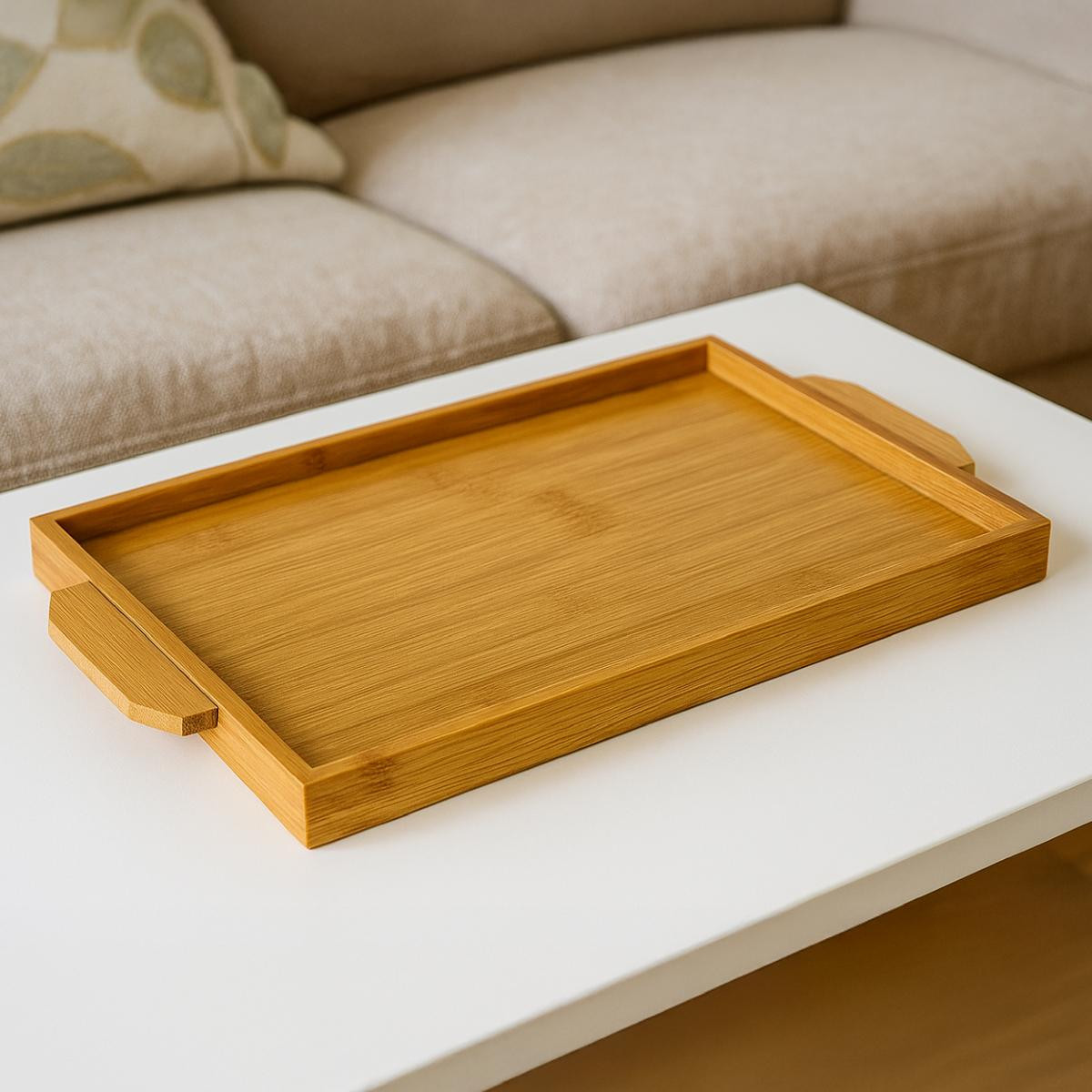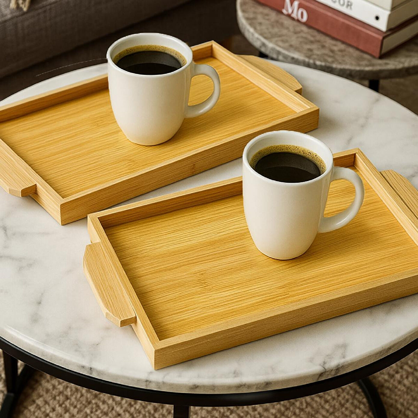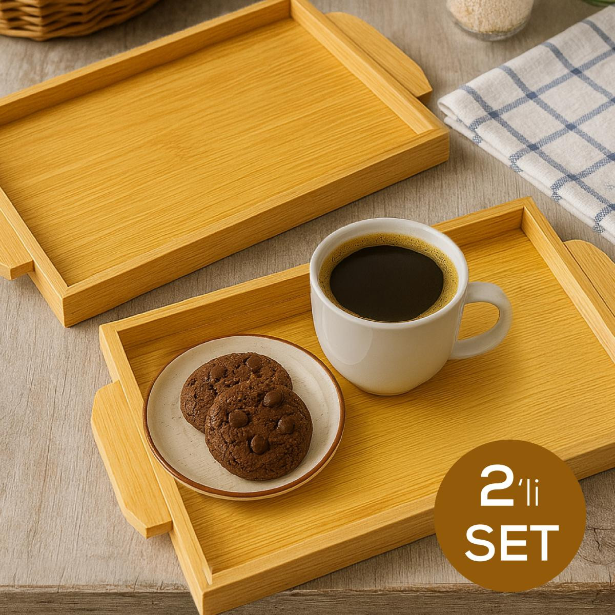 Vienev 2'li Kulplu Ahşap Bambu Tepsi