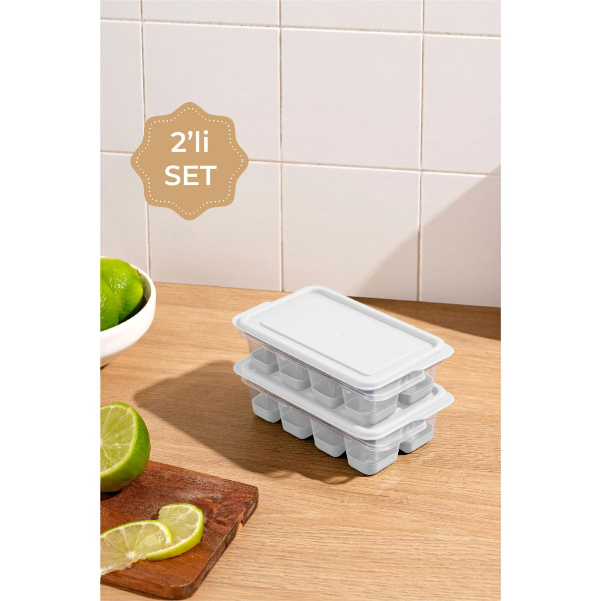 Vienev 2'li Silikon Buz Kalıbı 8 Bölmeli Beyaz