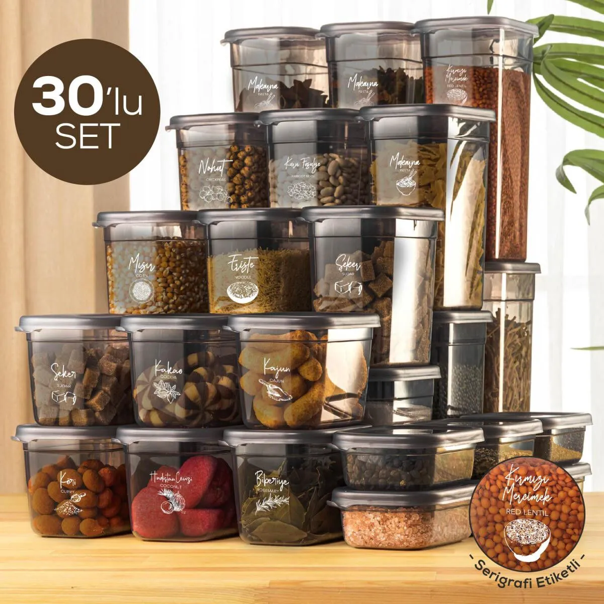 Vienev 30'lu Peggy Dikdörtgen Saklama Kutusu Seti 6x(1,9 1,5 1,15 0,8 0,4 Li̇tre) Serigrafi Etiketli