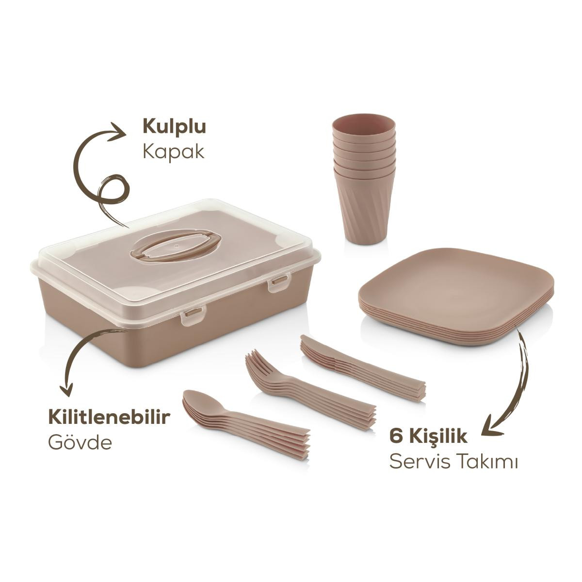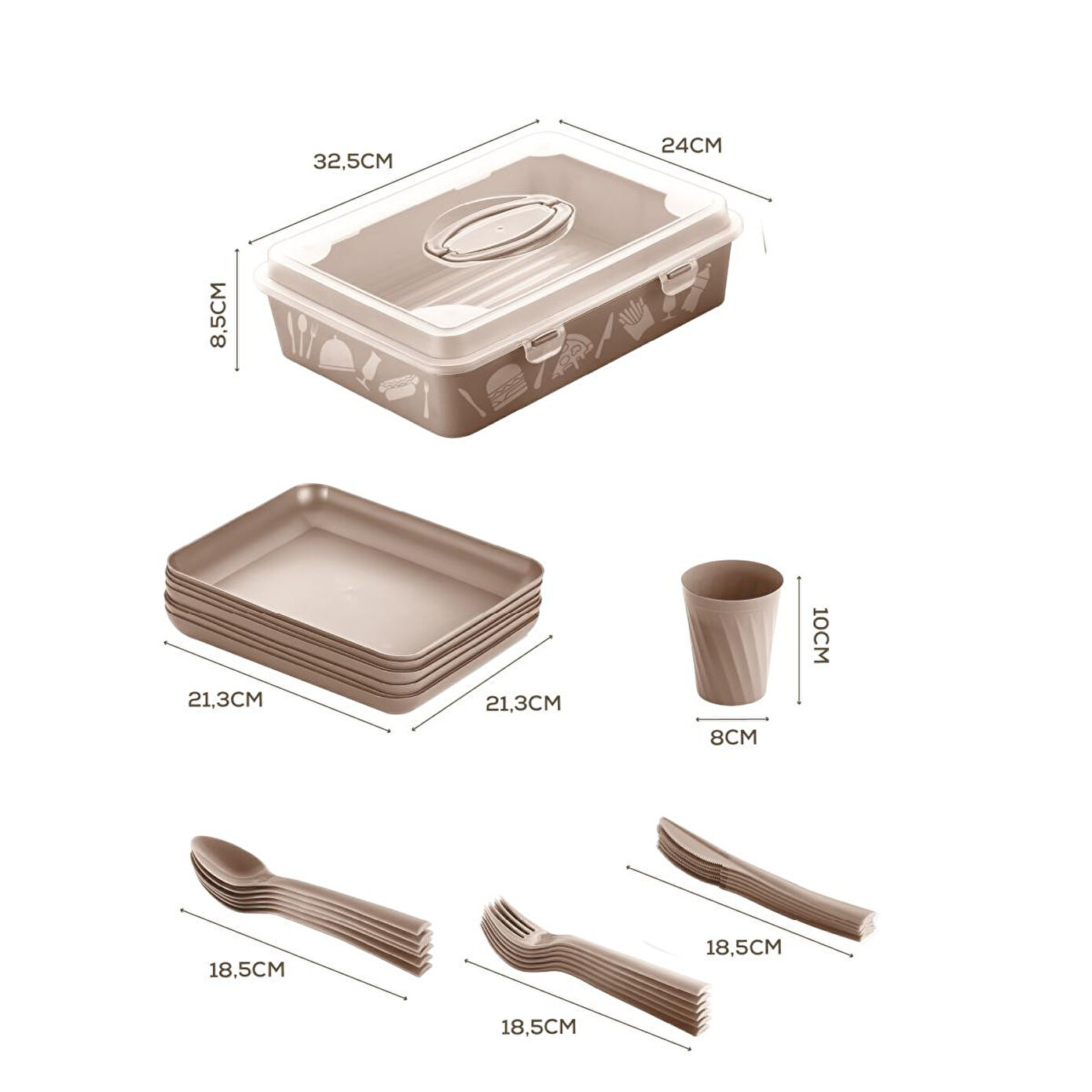 Vienev 32 Parça 6 Kişilik Taşınabilir Piknik Seti - Saklama Kutulu Bej