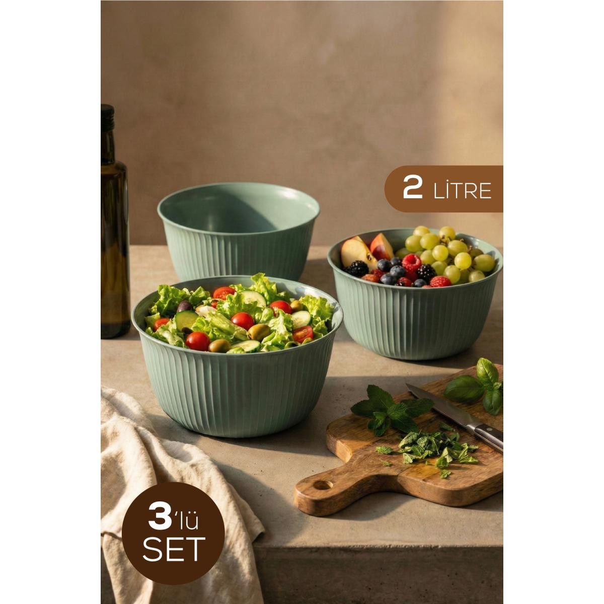 Mutfakta Pratikliğin ve Şıklığın Yeni Tanımı! ; ; Bu çok amaçlı kase seti yemek hazırlıklarını kolaylaştıran, estetik tasarımıyla göz alan, mutfaktaki en büyük yardımcınız olmaya geliyor! ; Günlük kullanımda karıştırma, yoğurma, saklama ve servis gibi birçok işlemi tek bir setle yapabilirsiniz.; ; ; 2 Litre – 20 cm çap x 10,5 cm yükseklik ; ; Öne Çıkan Özellikler: ; Yüksek Dayanıklılık: Kaliteli plastik malzemeden üretilmiştir, uzun ömürlü kullanım sunar.; ; Modern Tasarım: Dikey çizgili şık dış yüzey, estetik görünüm sunar.; ; İstiflenebilir Yapı: Kaseler birbirinin içine geçerek yerden tasarruf sağlar.; ; ; Çok Amaçlı Kullanım: ; • Salata karıştırma ; • Hamur yoğurma ; • Kek/muffin harcı hazırlama ; • Meyve-sebze yıkama ; • Gıda saklama veya servis ; ; Hijyenik ve Kolay Temizlik: Pürüzsüz iç yüzeyi sayesinde rahatça temizlenir.; ; Sağlığa Uygun: BPA içermez, gıda ile temasa uygundur.; ; ; Mutfağınızda hem estetik hem işlevsellik arıyorsanız, bu kase seti sizin için üretildi.; ; Şimdi sepetinize ekleyin ve pratikliğin tadını çıkarın! ;