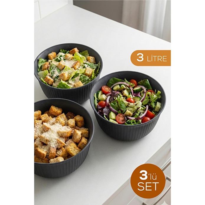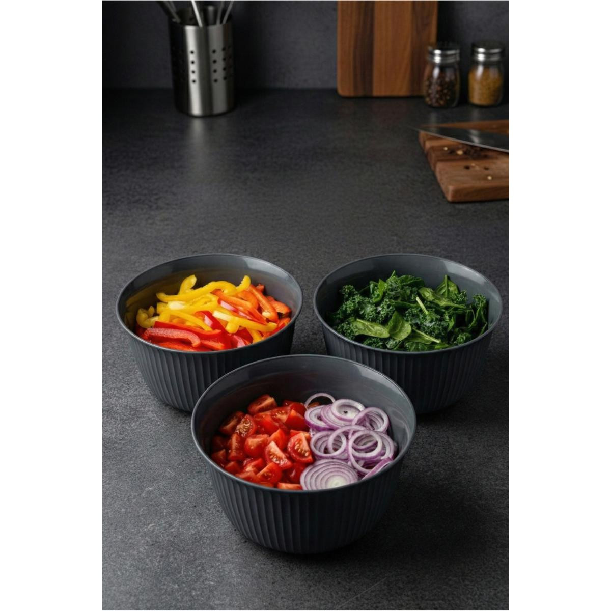 Vienev 3'lü 3 Litre Plastik Karıştırma Ve Saklama Kase Seti Antrasit