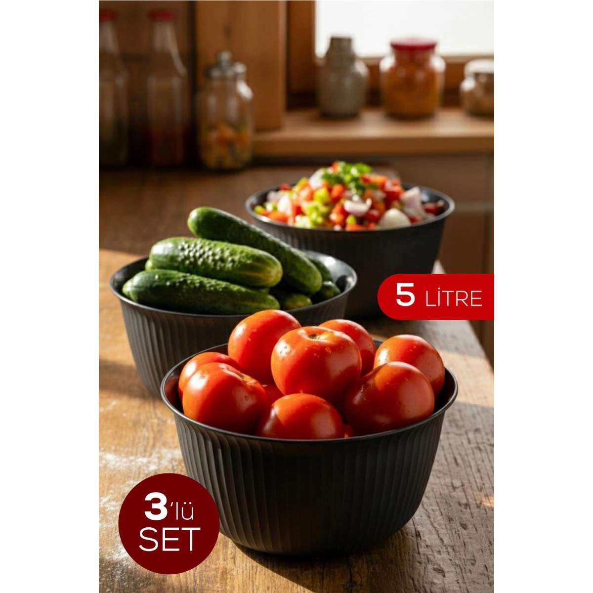 Vienev 3'lü 5 Litre Plastik Karıştırma Ve Saklama Kase Seti Antrasit